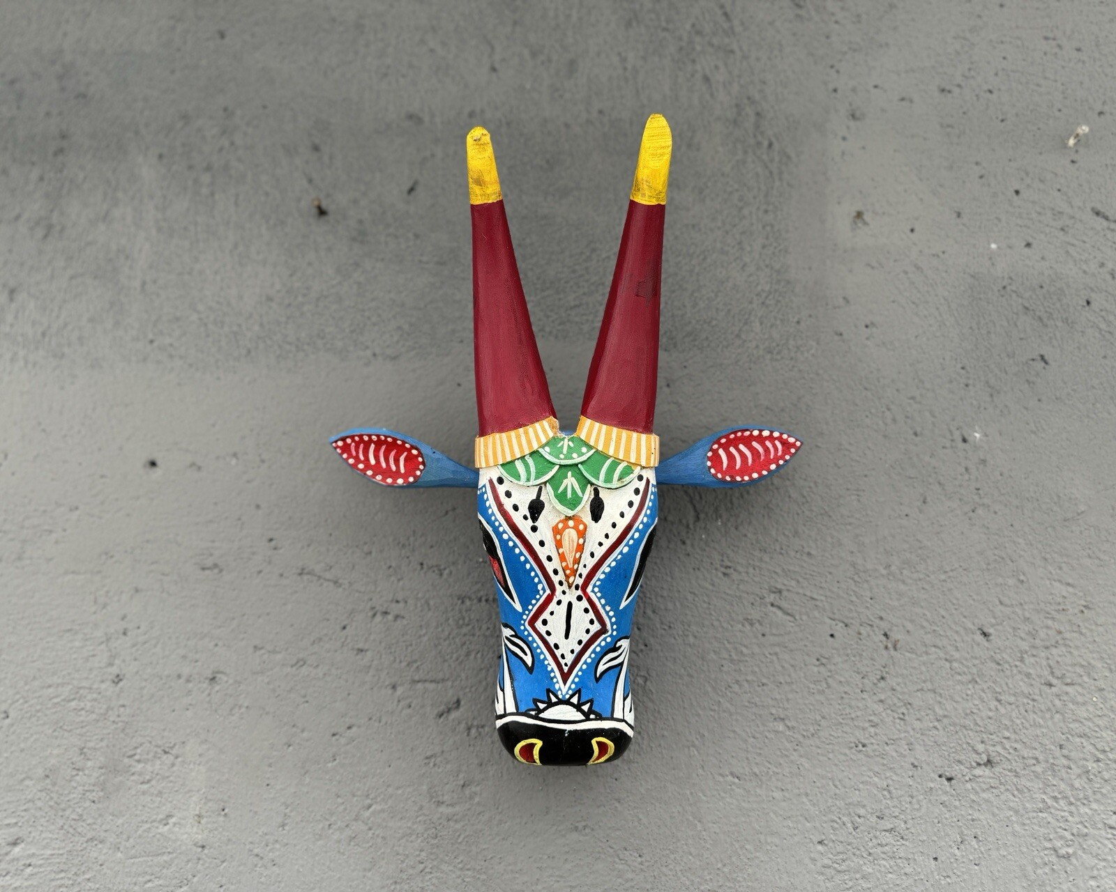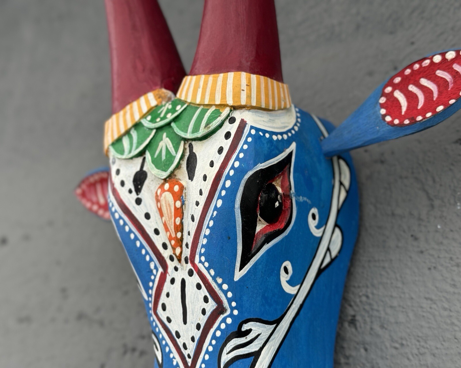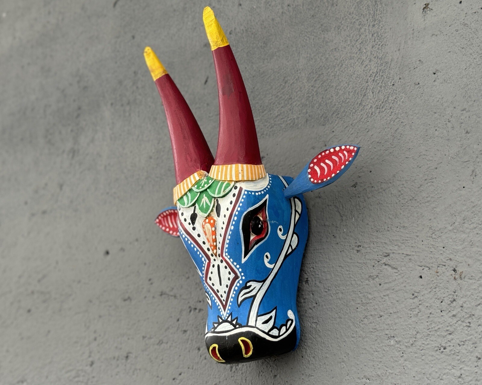 Indian Wooden cow Head Nandhi Face Mask Wall Hanging Interior Decor Artefacts.