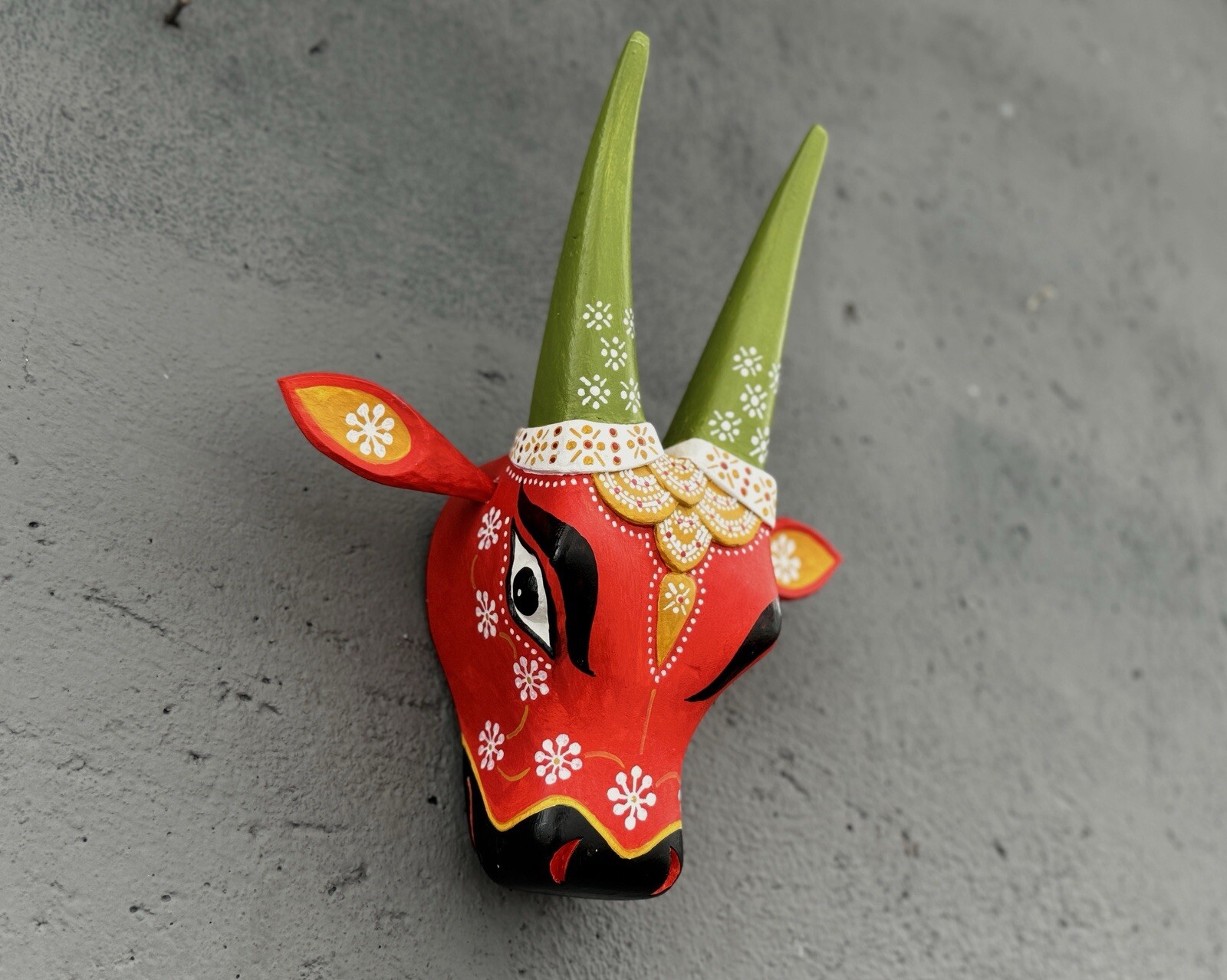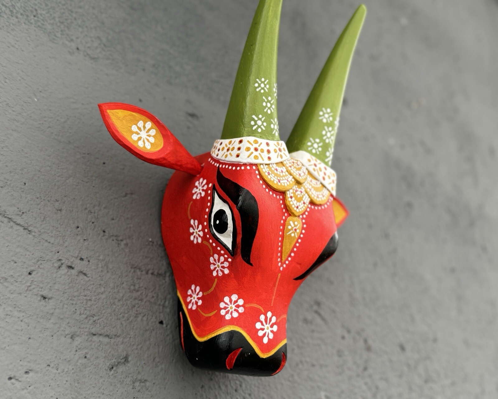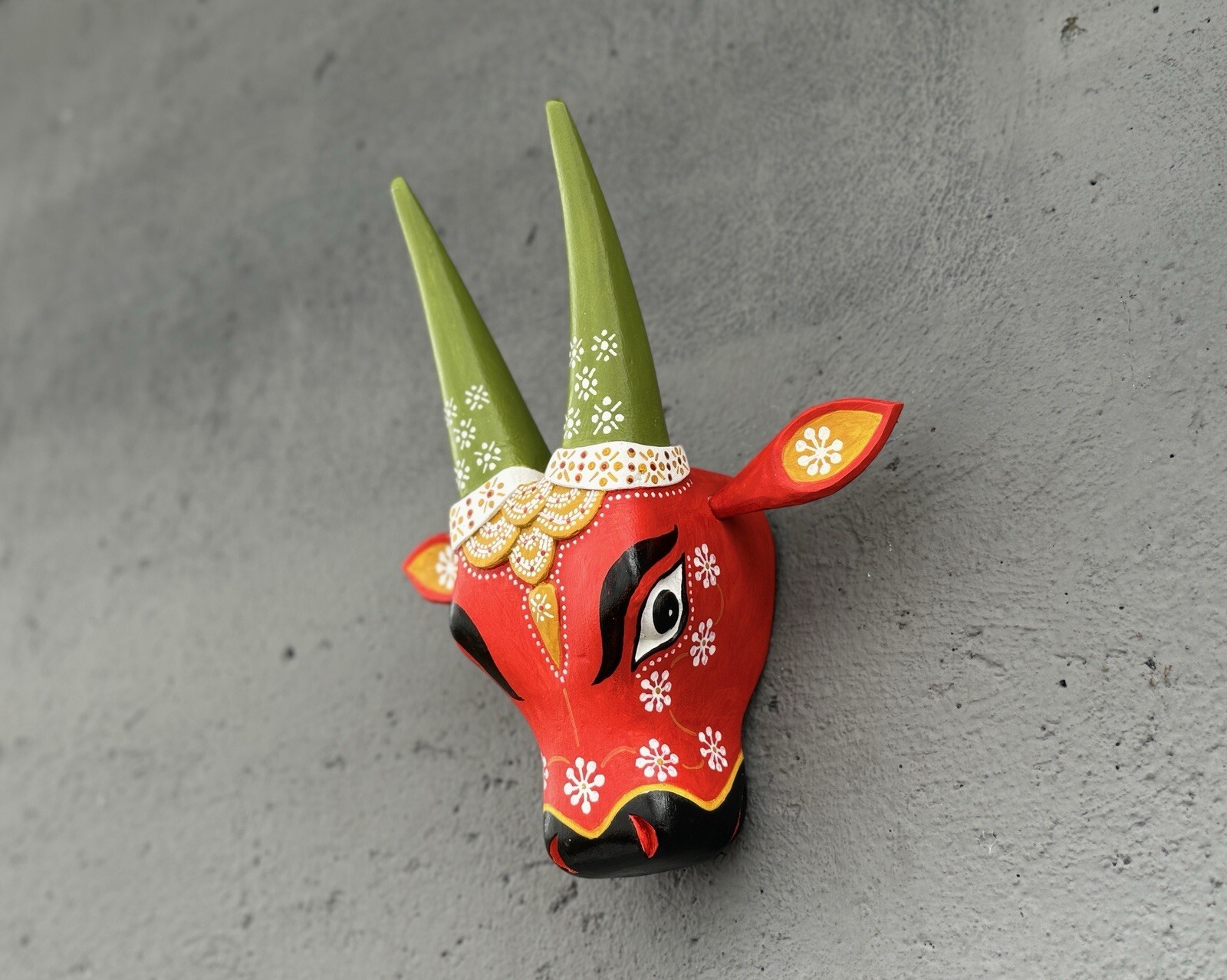 Indian Wooden Cow Head Nandhi Face Mask Wall Hanging Interior Decor Artefacts.