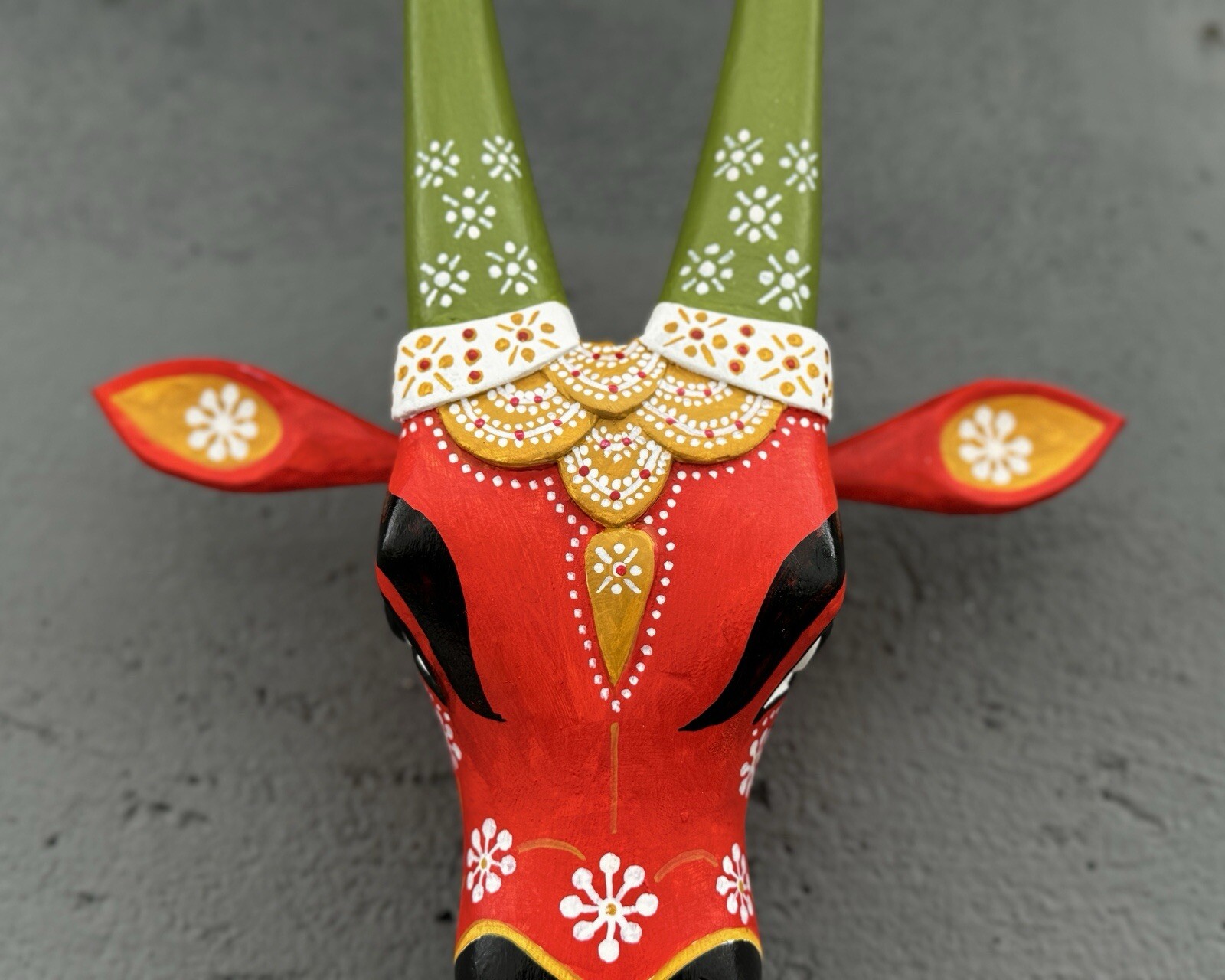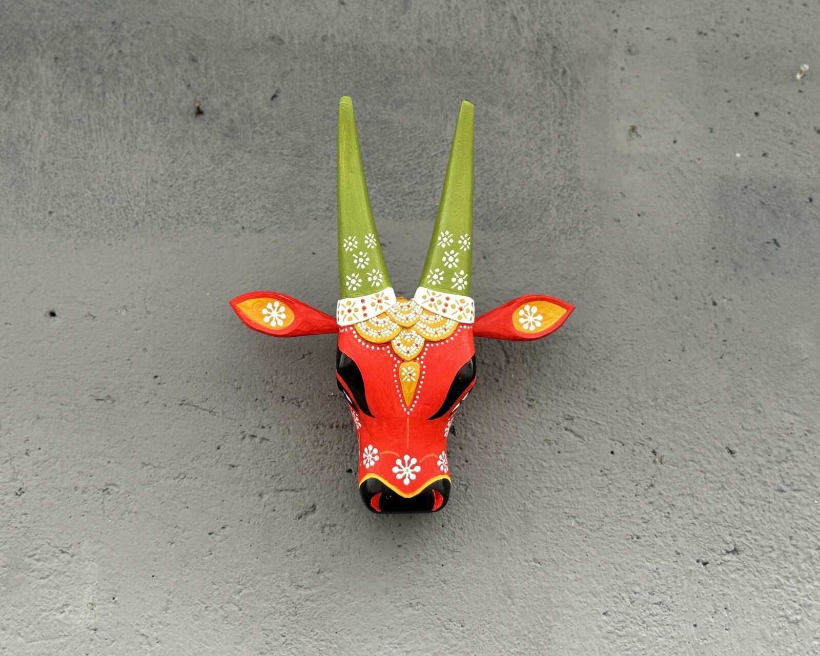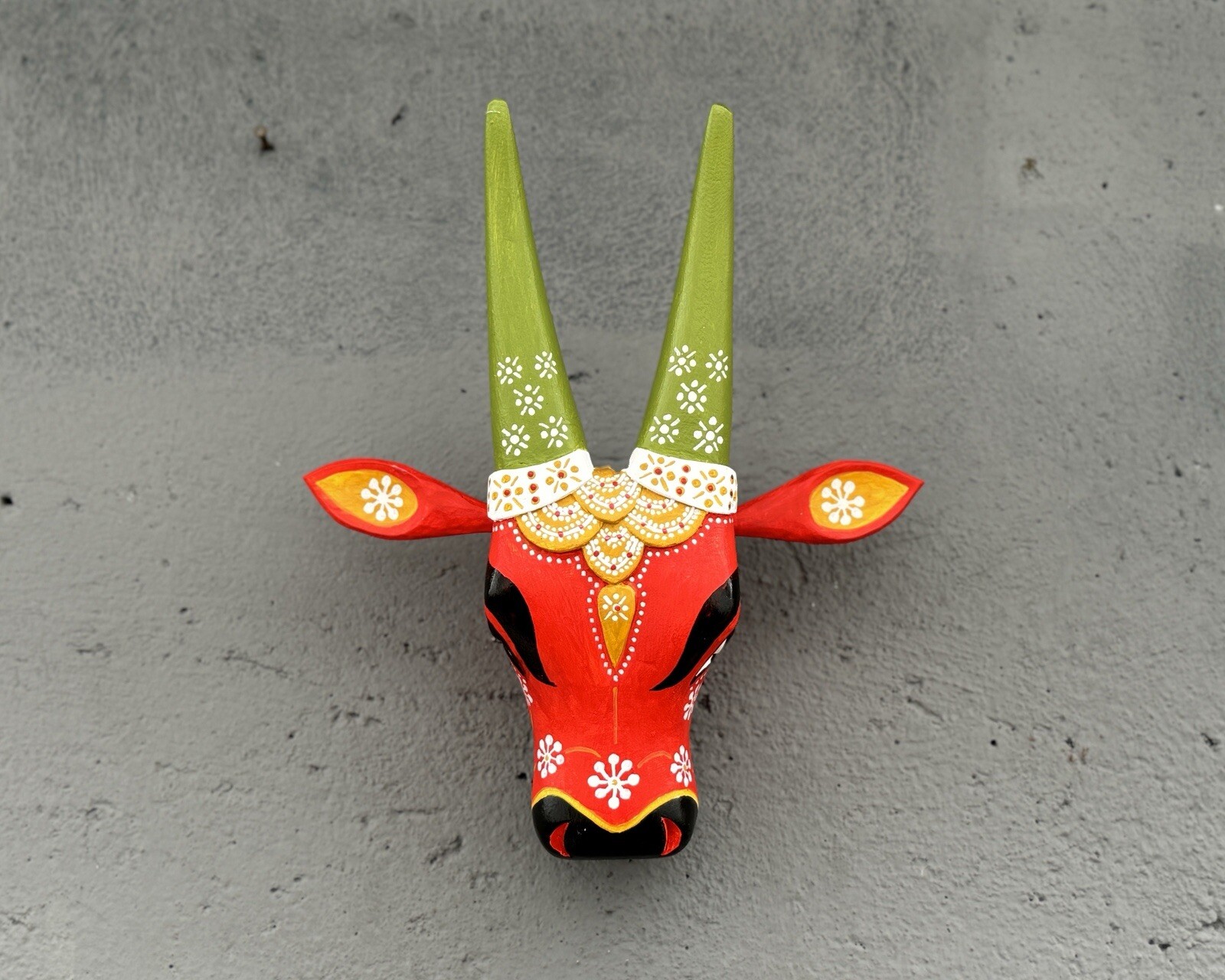 Indian Wooden Cow Head Nandhi Face Mask Wall Hanging Interior Decor Artefacts.