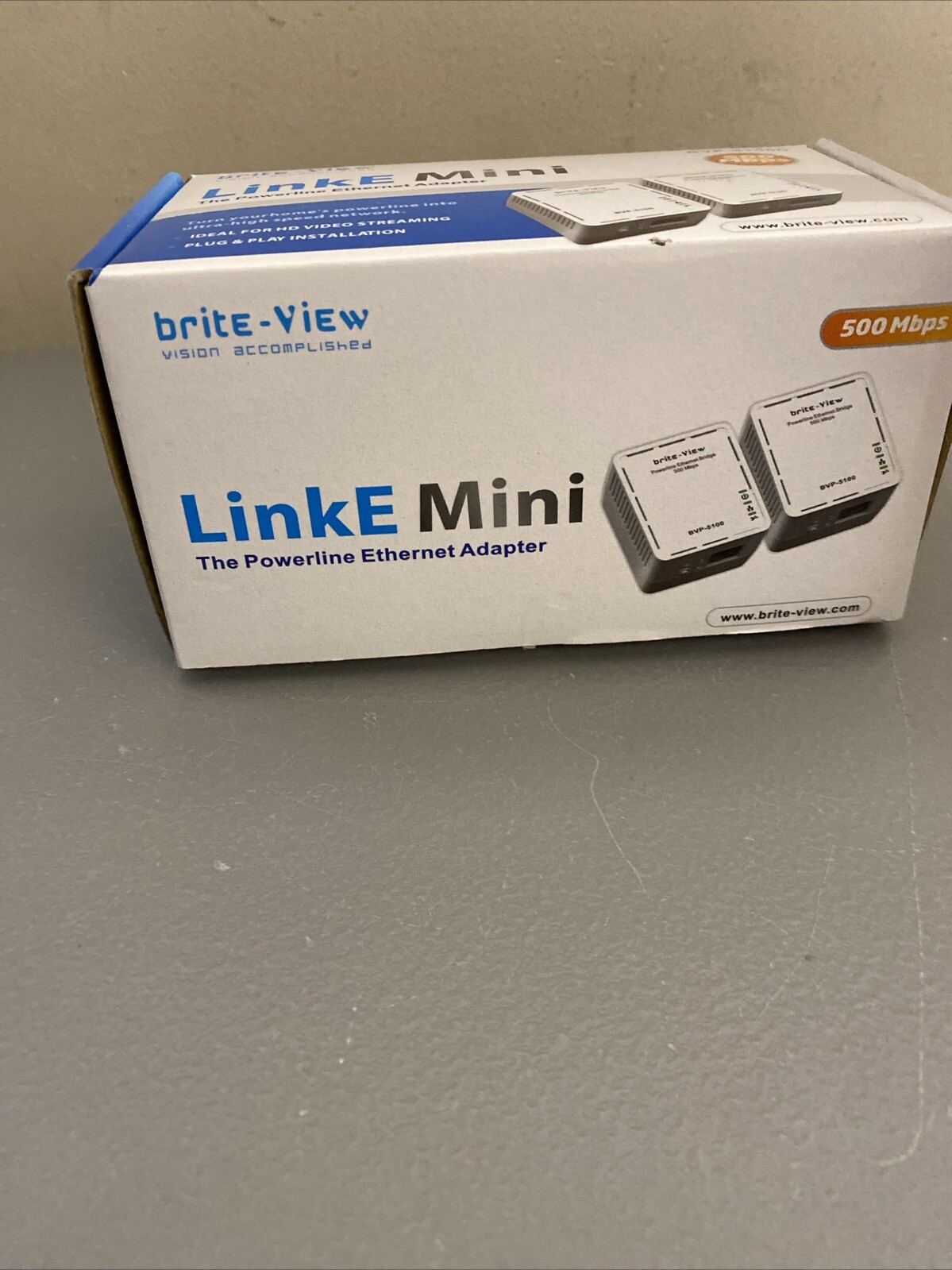 Brite-View LinkE Mini 500 Mbps Powerline Ethernet Adapter BVP-5100D New