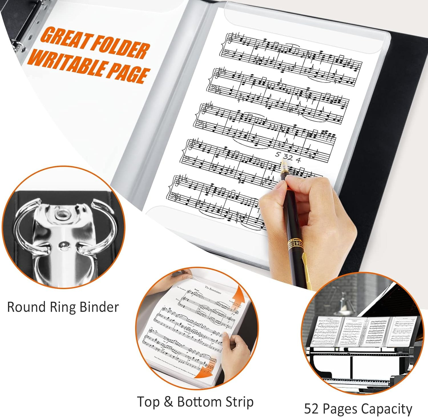 Sheet Music Folder 8.5 11 Music Binder 4 Page Expand 52 Pages Capacity Writable