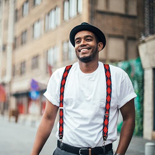 Suspenders for Men, Adjustable Suspenders with Elastic Straps Y-Back Red
