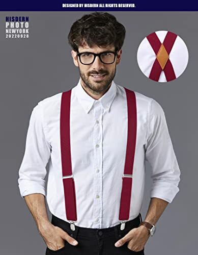 Suspenders for Men X-Back 1.4 Adjustable Elastic Suspender Braces A7-burgundy