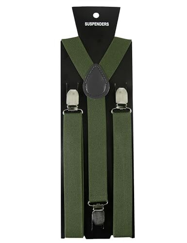 Solid Color Mens Suspender with 3 Strong Clips Adjustable Braces Olive Green