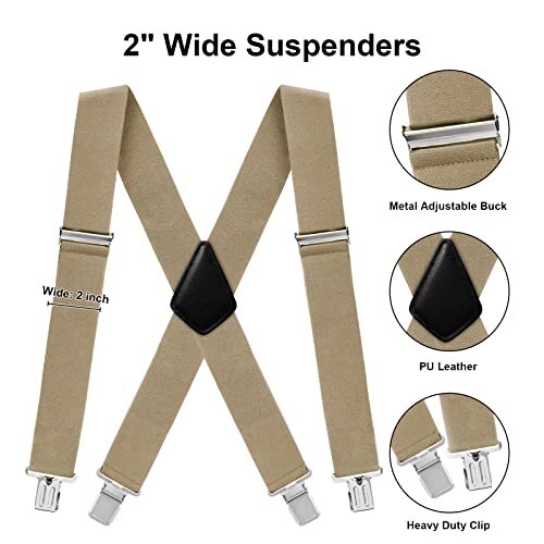 Mens Suspenders X-Back 2 Wide Adjustable Solid Straight 04 X-back Khaki