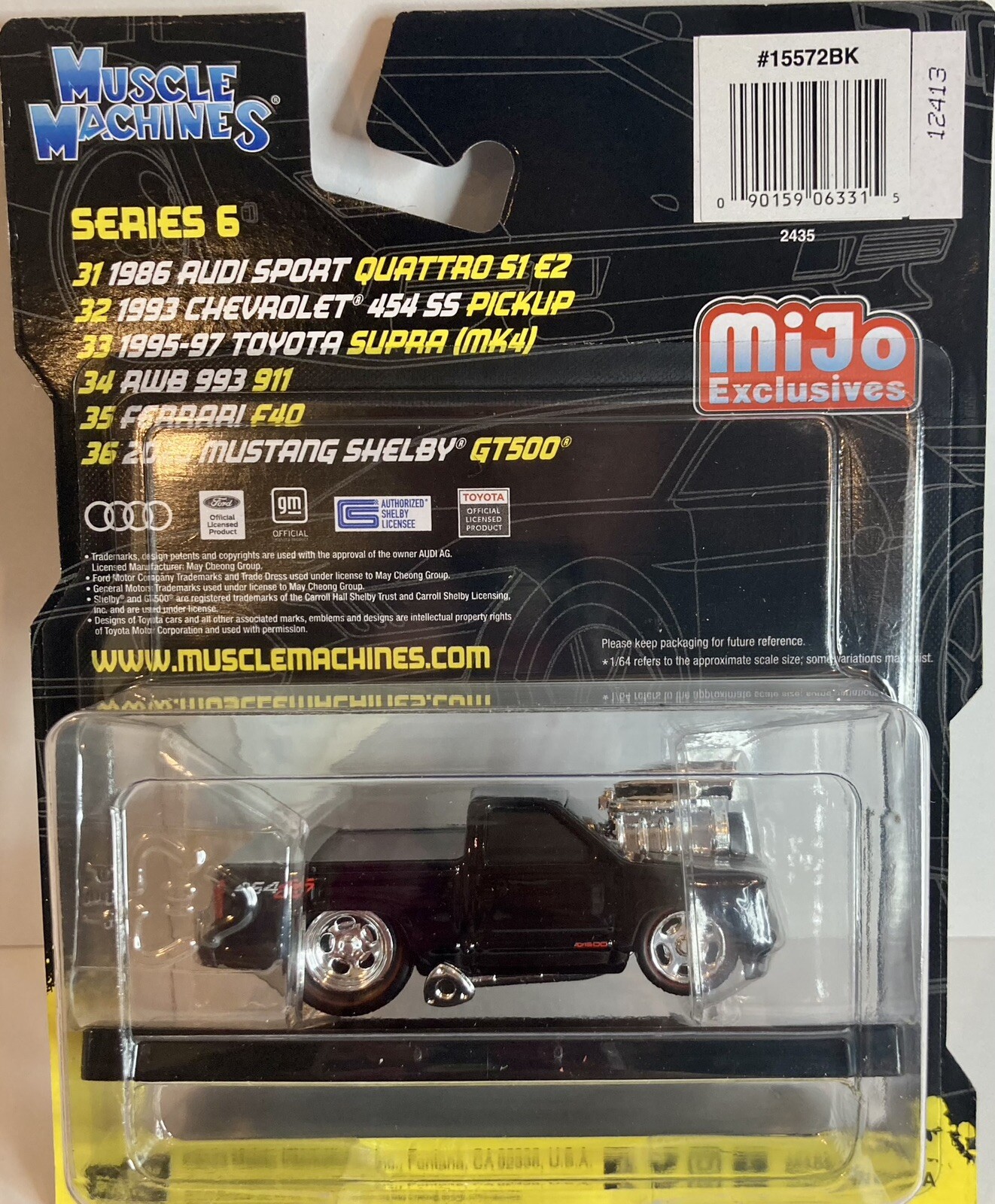 1993 CHEVROLET 454 SS PICKUP BLACK 1/64 DIECAST MODEL BY MUSCLE MACHINES