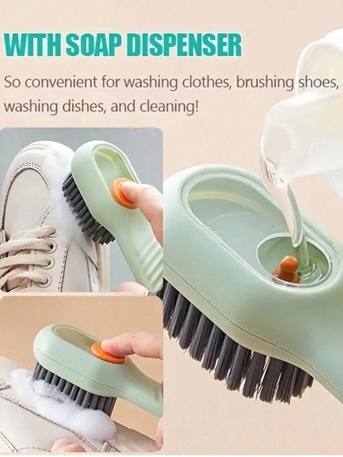 Multifunctional Cleaning Brush With Liquid Dispenser, Press-Type Shoe Brush
