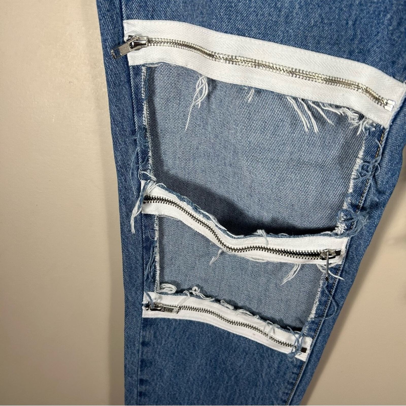 как выглядит Carmar Hermia Distressed Zipper High Waist Loose Straight Jeans Size 26 фото