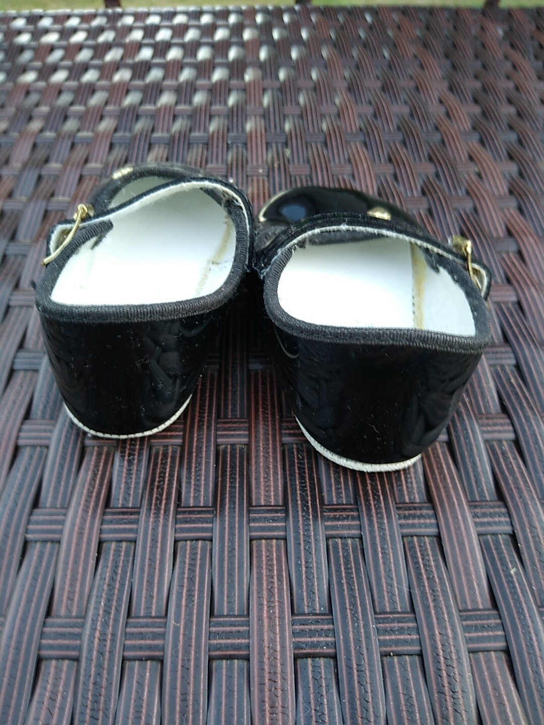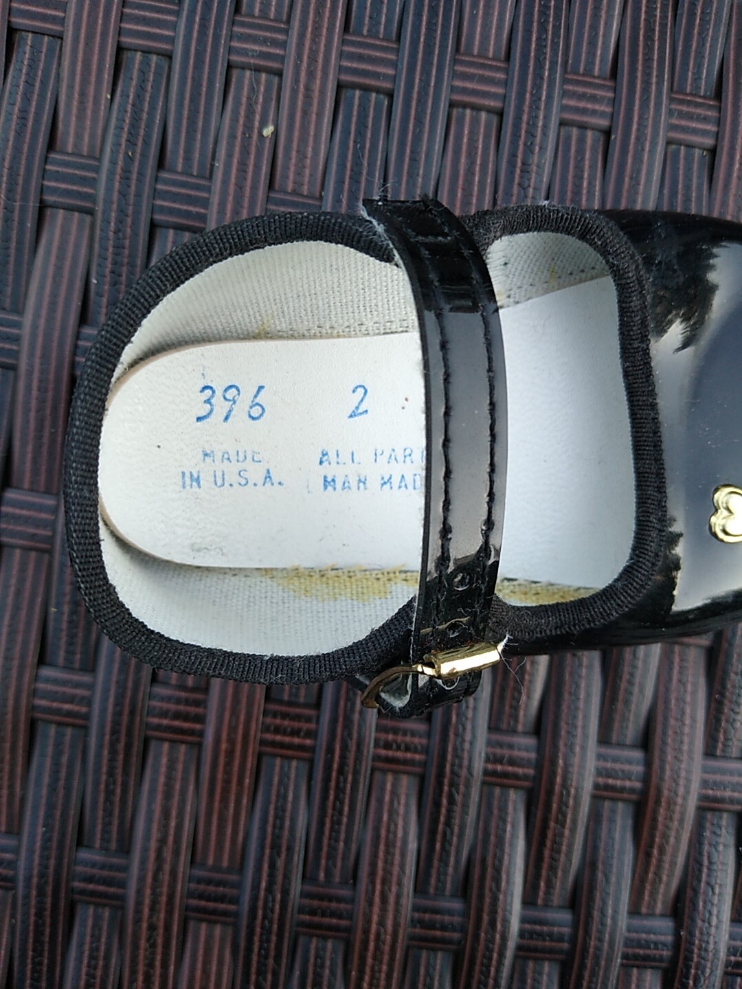 как выглядит Vintage Size 2 Black Patent Mary Jane Baby Shoes Heart Embellishments фото