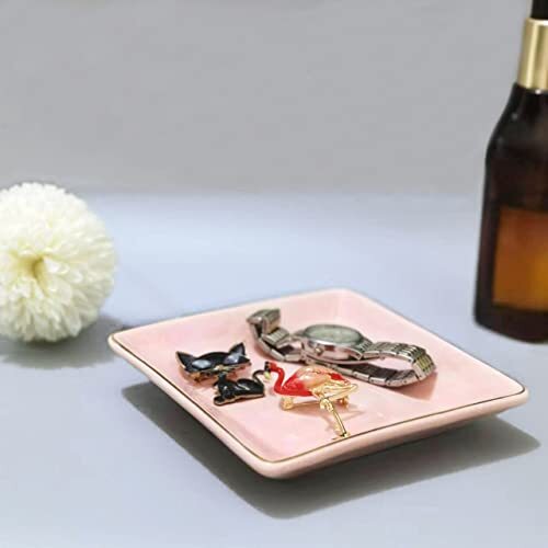 как выглядит Ceramic Jewelry Dish Tray, Decorative Trinket Tray Holder for Ring Earring Pink фото