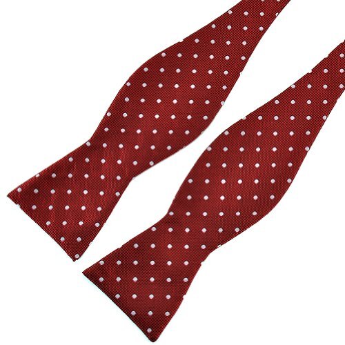 Mens Self Bow Tie Polka Dots Woven Silk Bow Ties Red White Dots