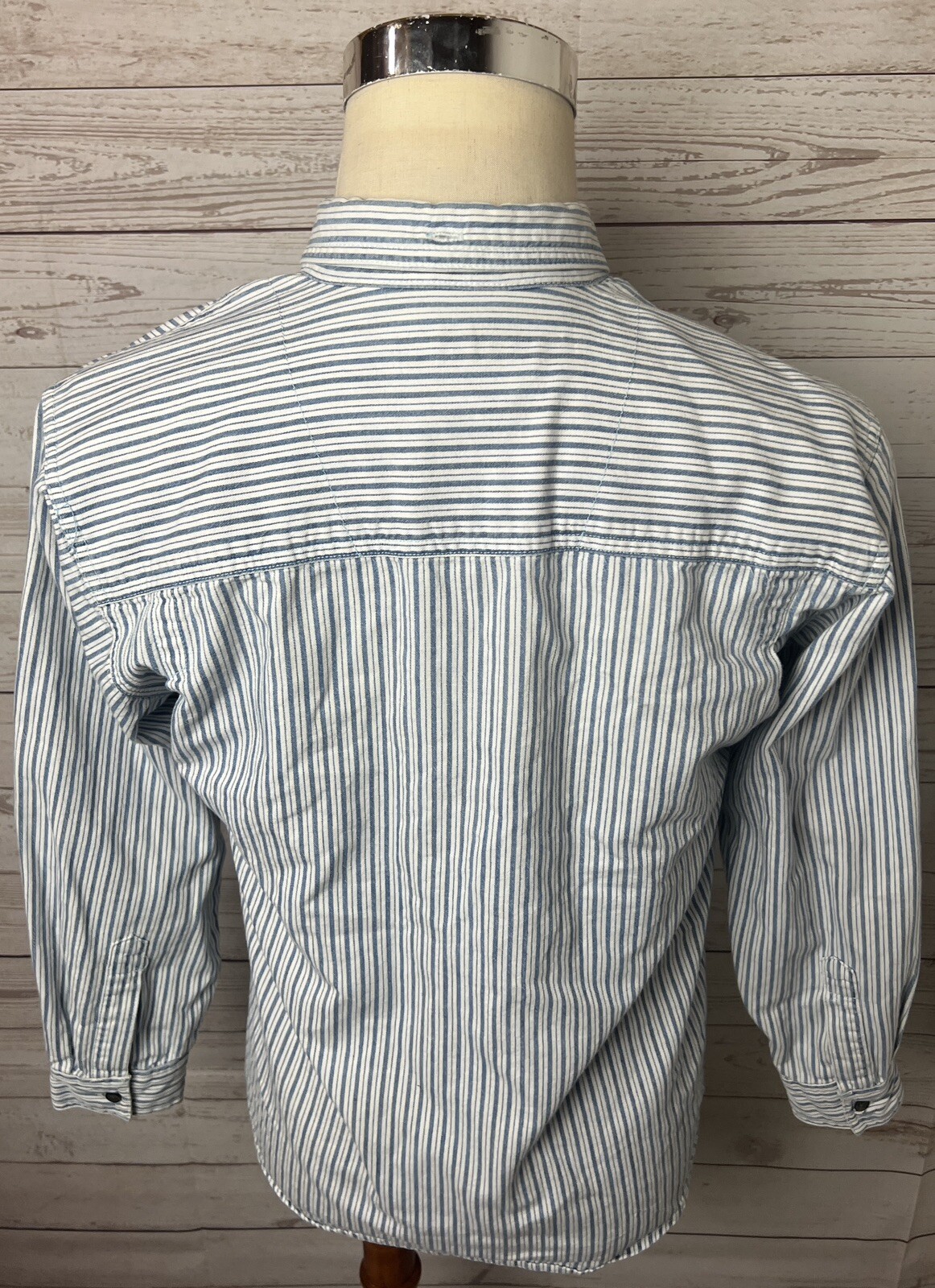 как выглядит VINTAGE Guess Shirt Boys Medium 12-14 Blue White Striped Button Up Youth фото