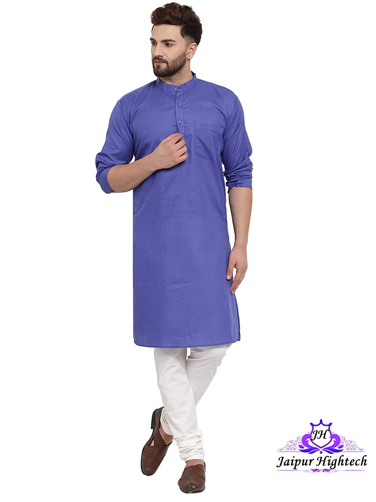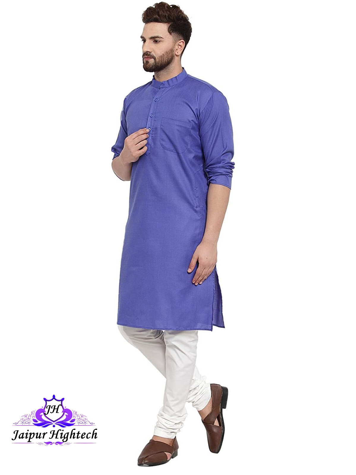 Men s Wear Royal Blue Cotton Designer Kurta Party Wear Tunic Summer Clothing