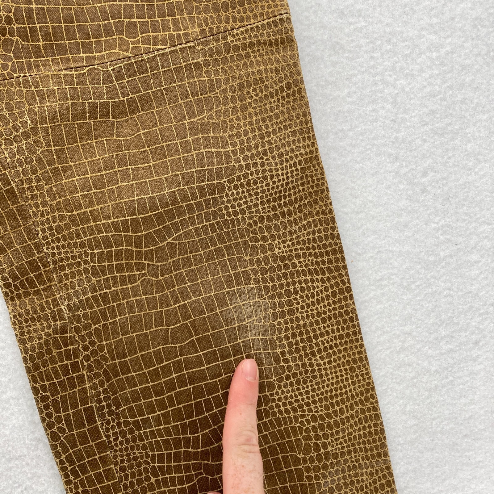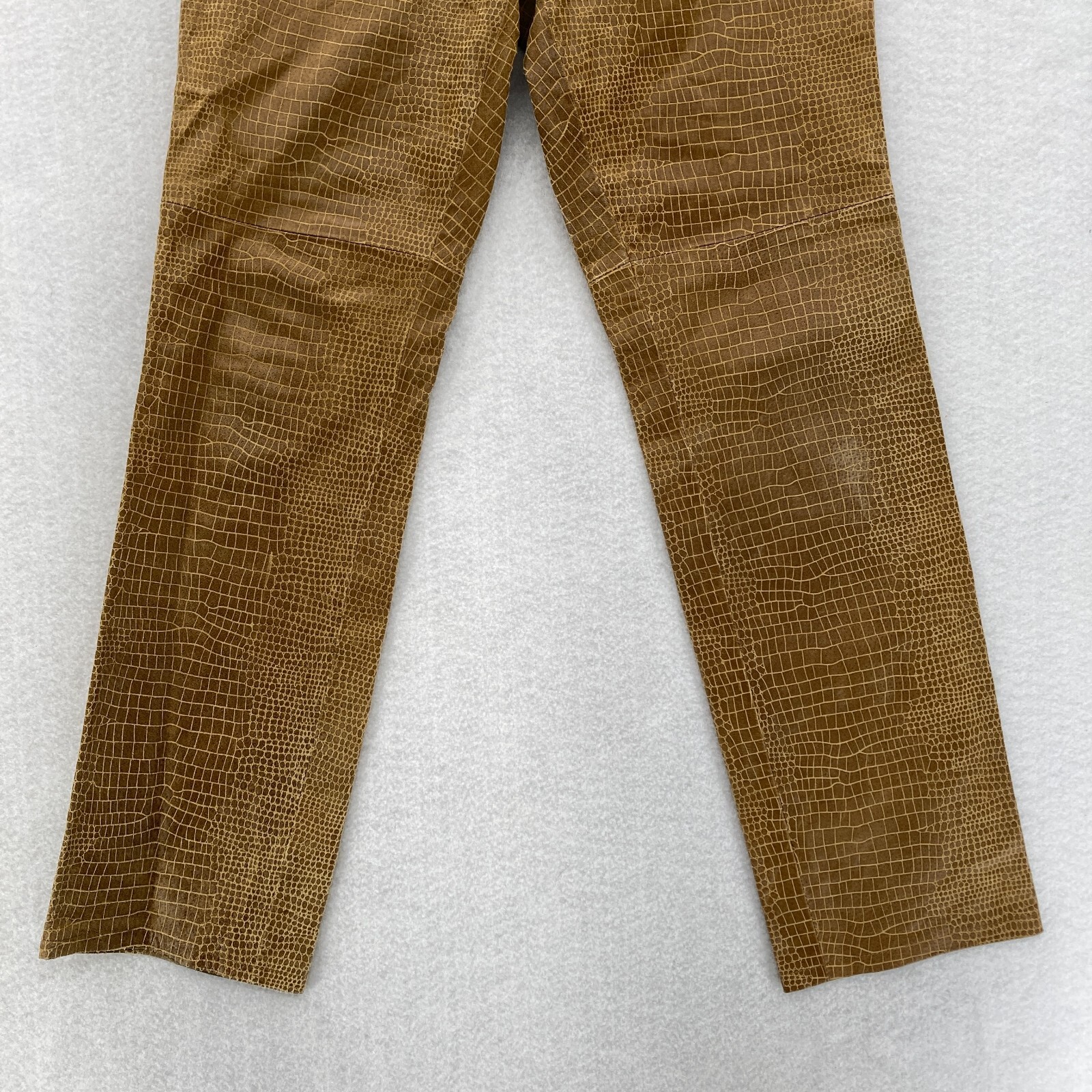 как выглядит Vintage Hugo Buscati Leather Pants Womens 6P Petite Brown Alligator Print Lined фото