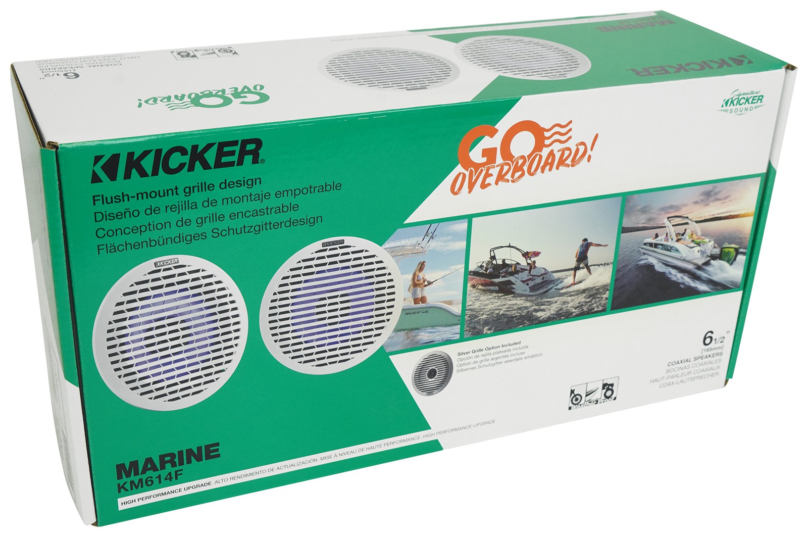 Pair Kicker 51KM614FL 6.5 Thin Mount 60w Marine Boat Speakers w/RGB LED KM614FL