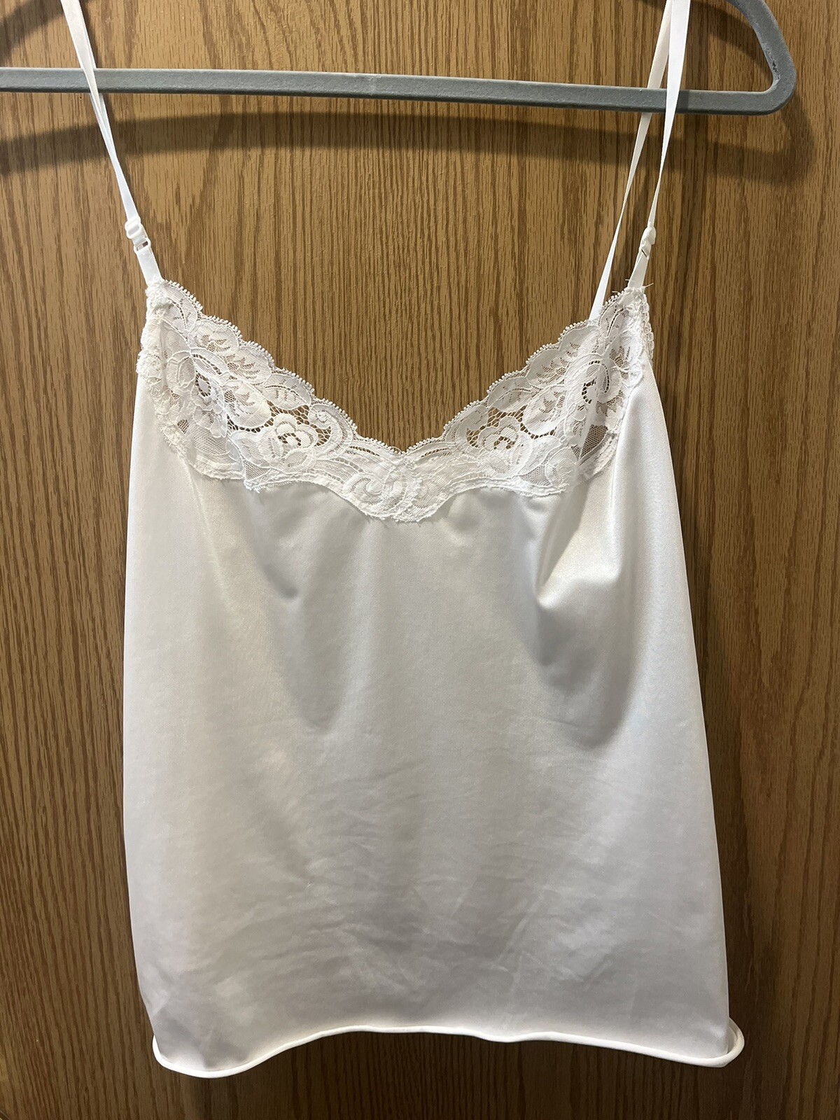 как выглядит Vintage 80s Vanity Fair Lingerie Slip Top Camisole With Lace Trim - Ivory Color фото