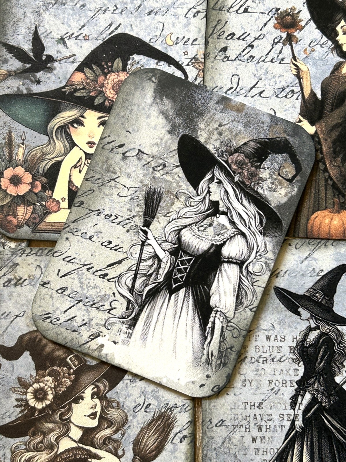 Witch vintage style junk journal vintage witches witchy card toppers set of 10
