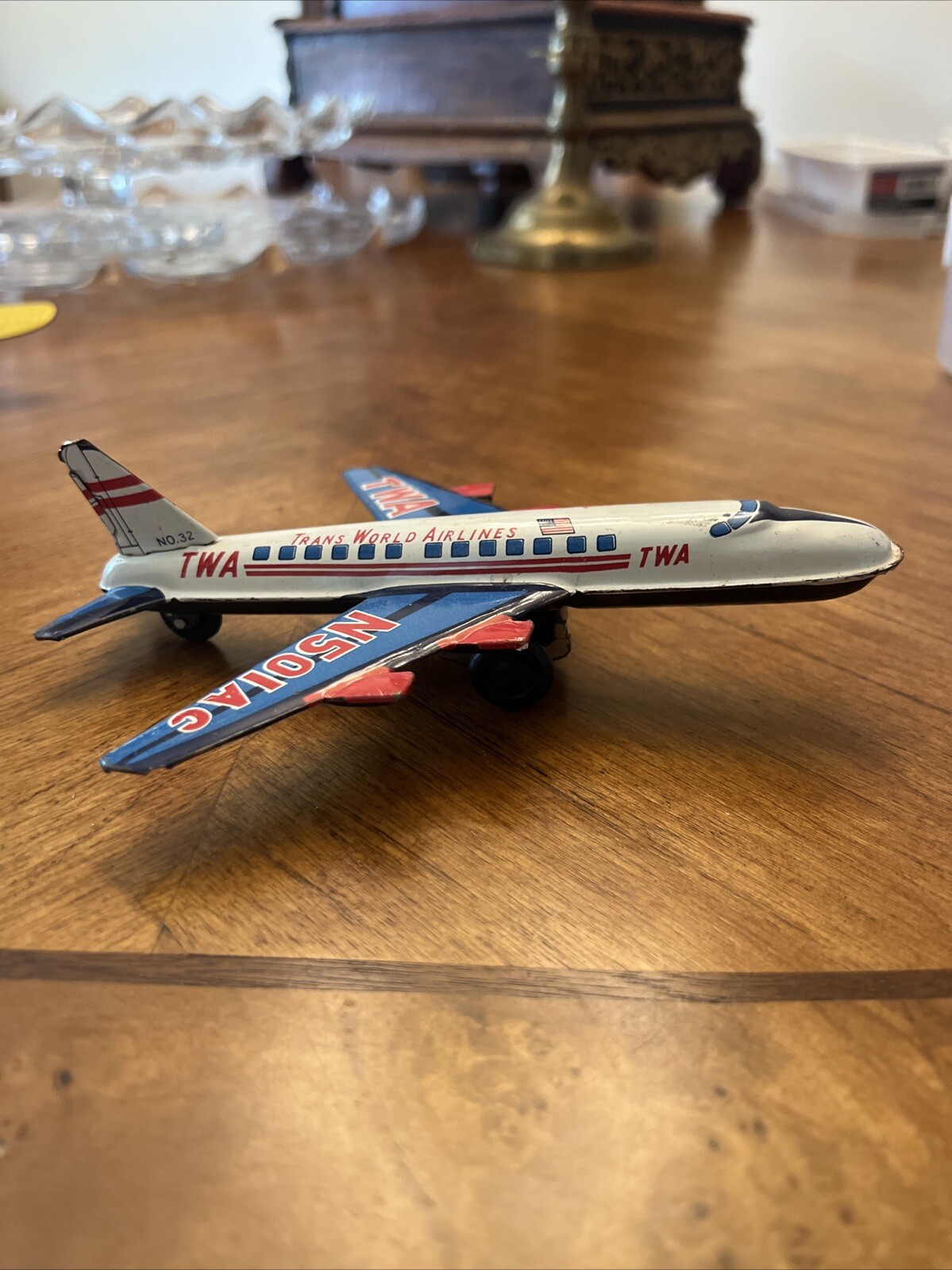 как выглядит TWA Plane VINTAGE 7" TIN FRICTION TOY - N501AC Japan Trans World Airways фото