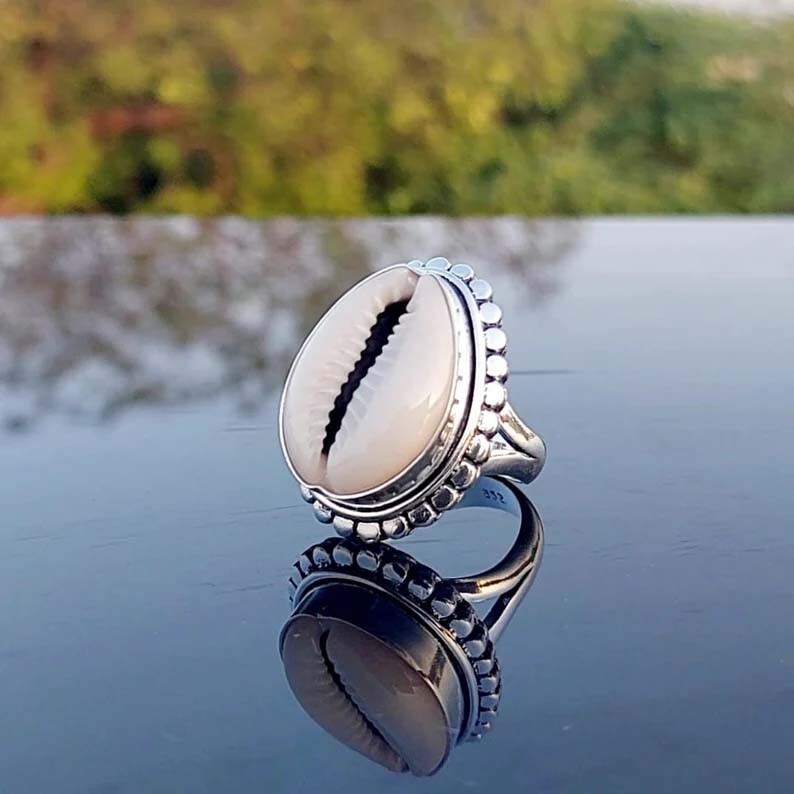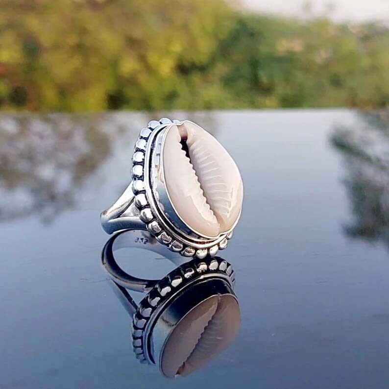 925 Sterling Silver Cowrie Shell Ring Bohemian Handmade Gift For Her Wedding