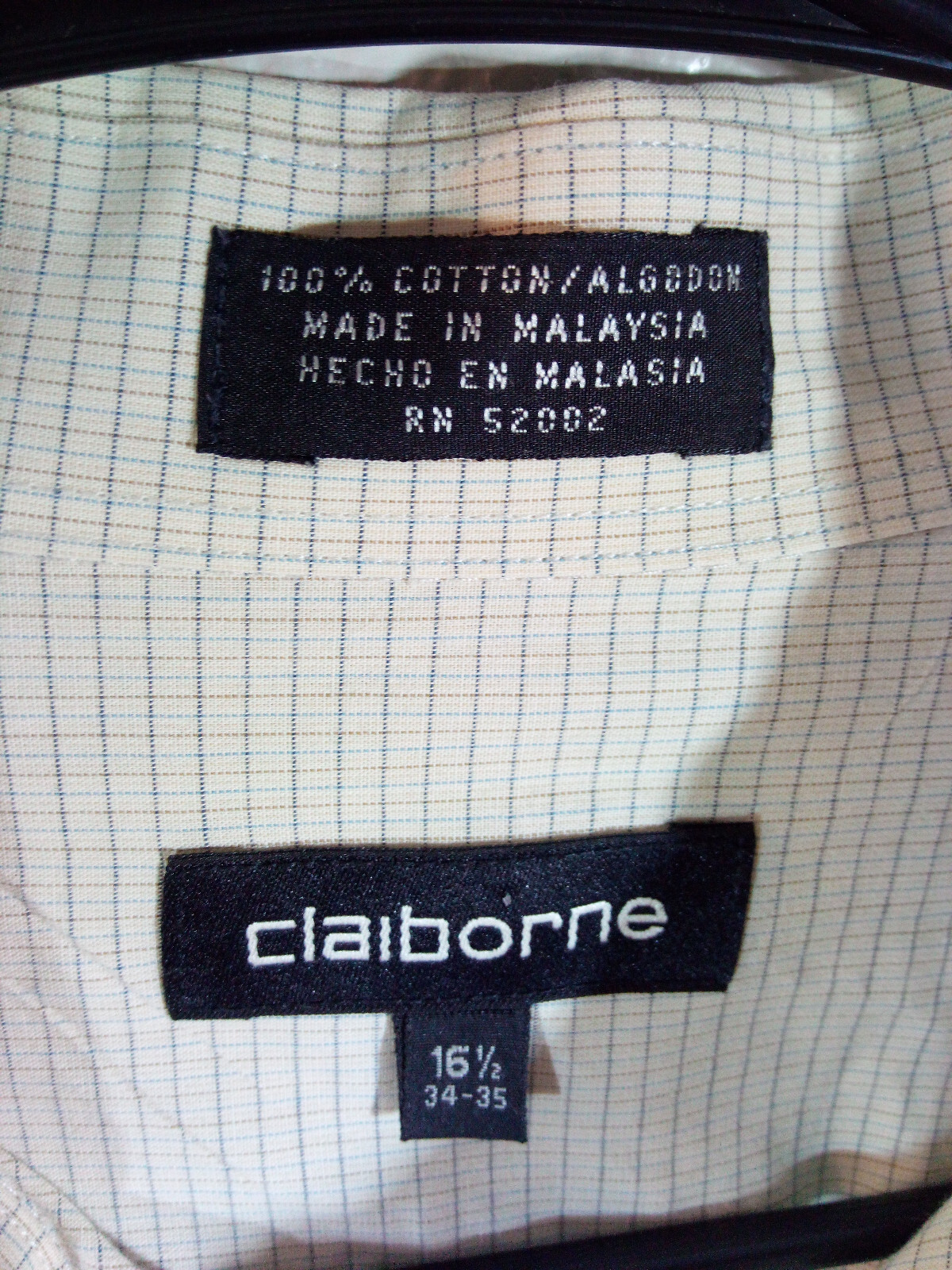 как выглядит CLAIBORNE Mens Tan Striped 100 Cotton Long Sleeve Button Up Dress Shirt Sz 16.5 фото