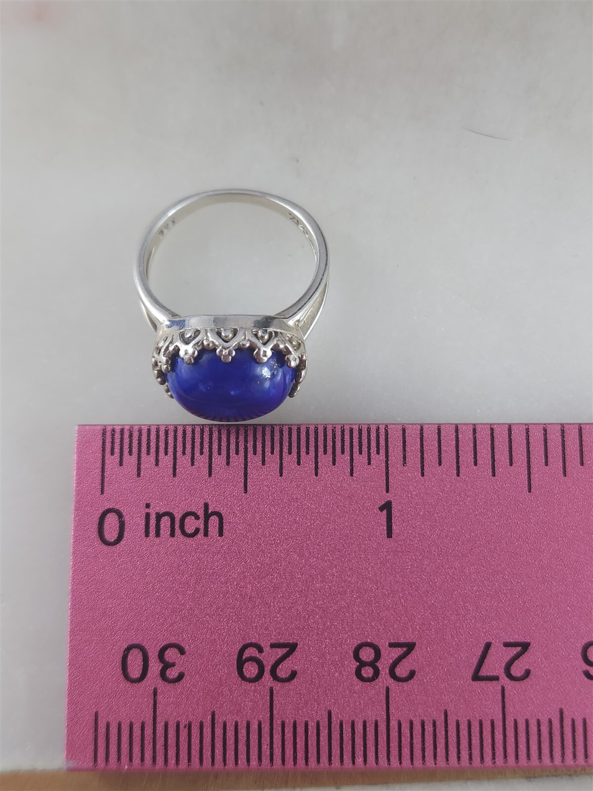 как выглядит CRZ Vintage Sterling Silver 11mm Blue Lapis Lazuli Ring Size 5 - 3.3 Grams фото