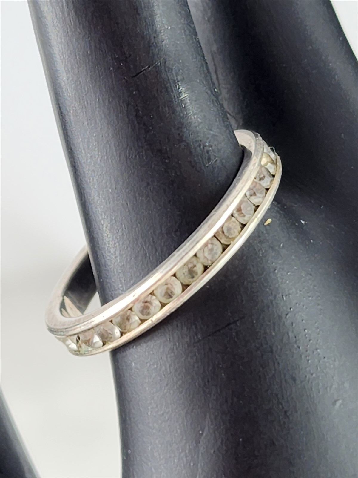 Vintage Sterling Silver 2mm Gemstone Inlay Band Ring Size 8.25 - 2.1 Grams