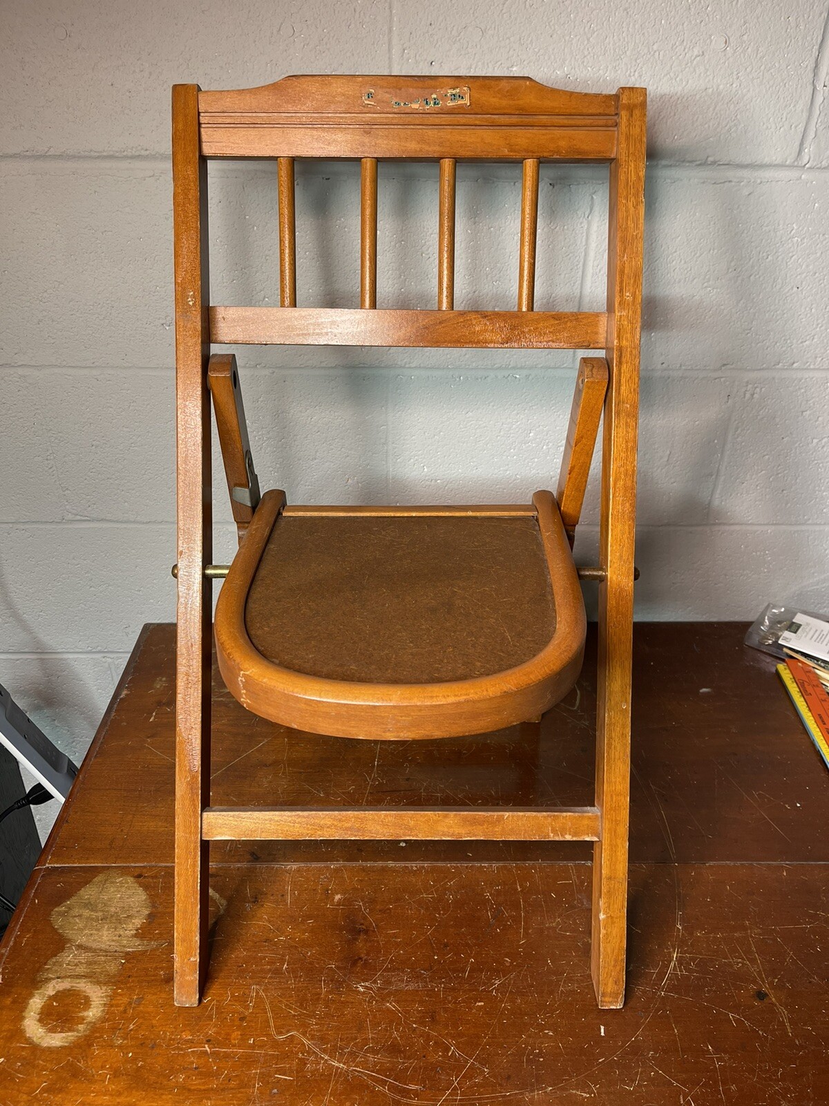 как выглядит VTG Babee Tenda Childs Solid Wood Folding Chairs Pair Mechanisms Work фото