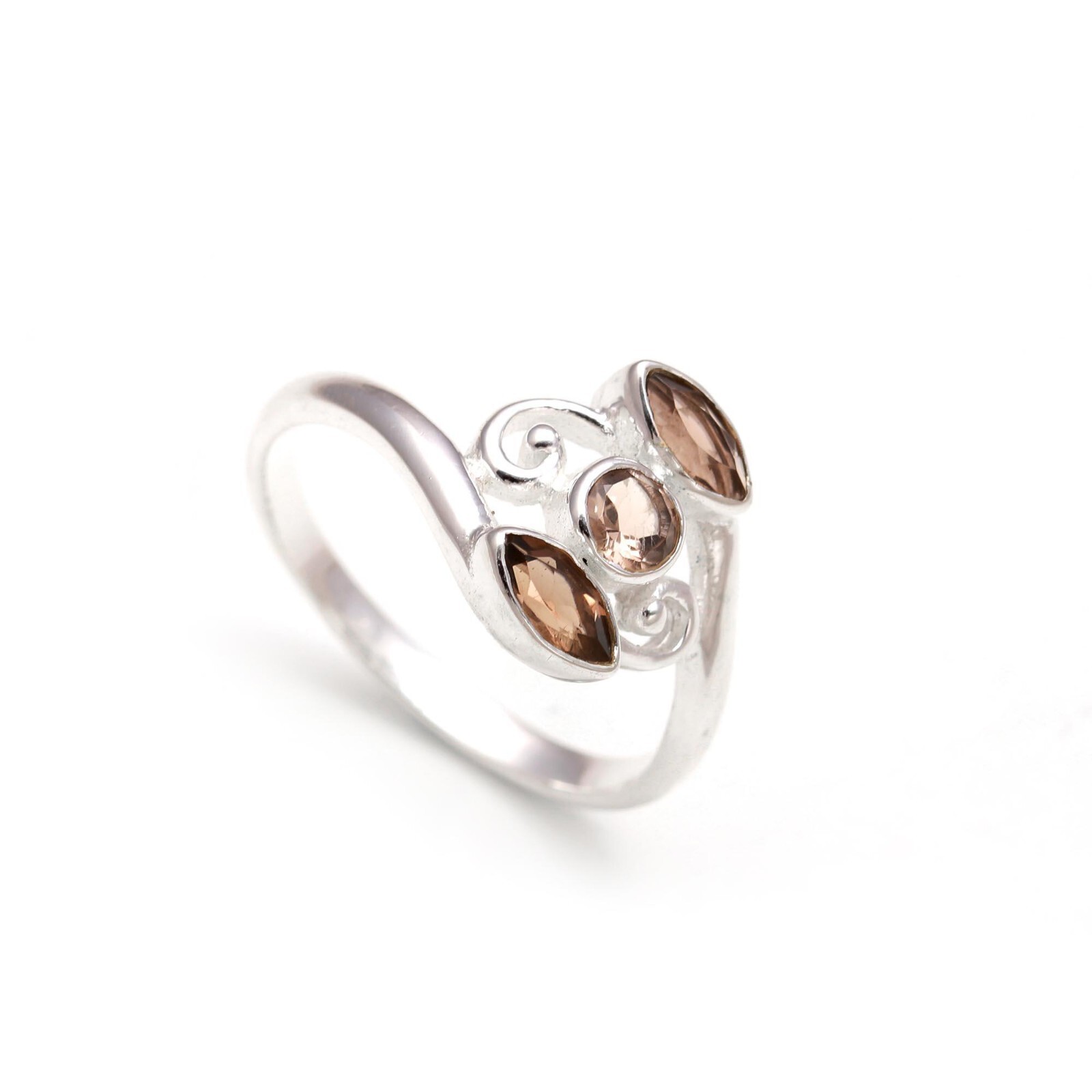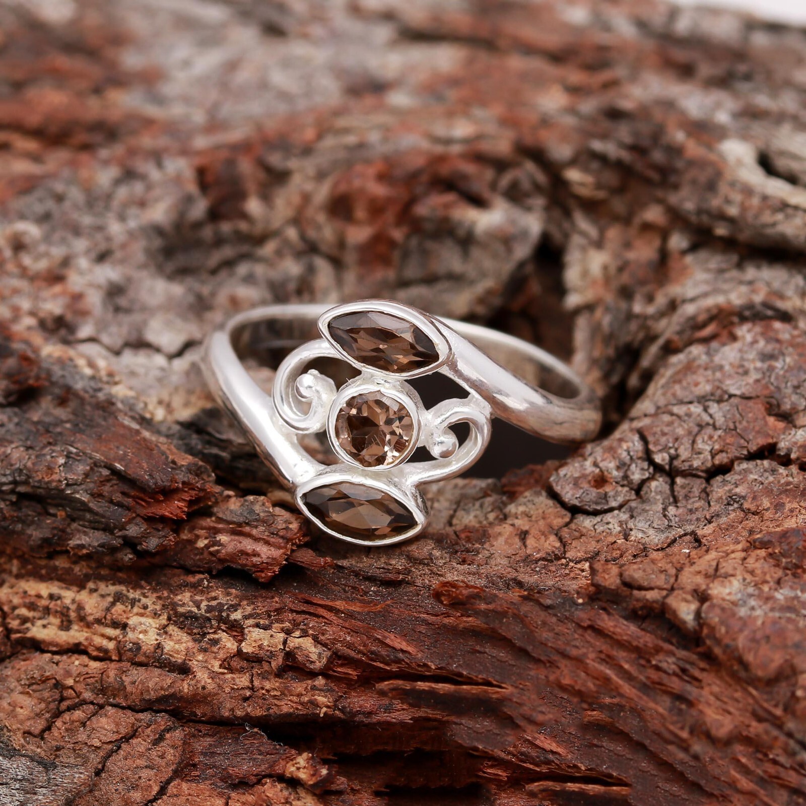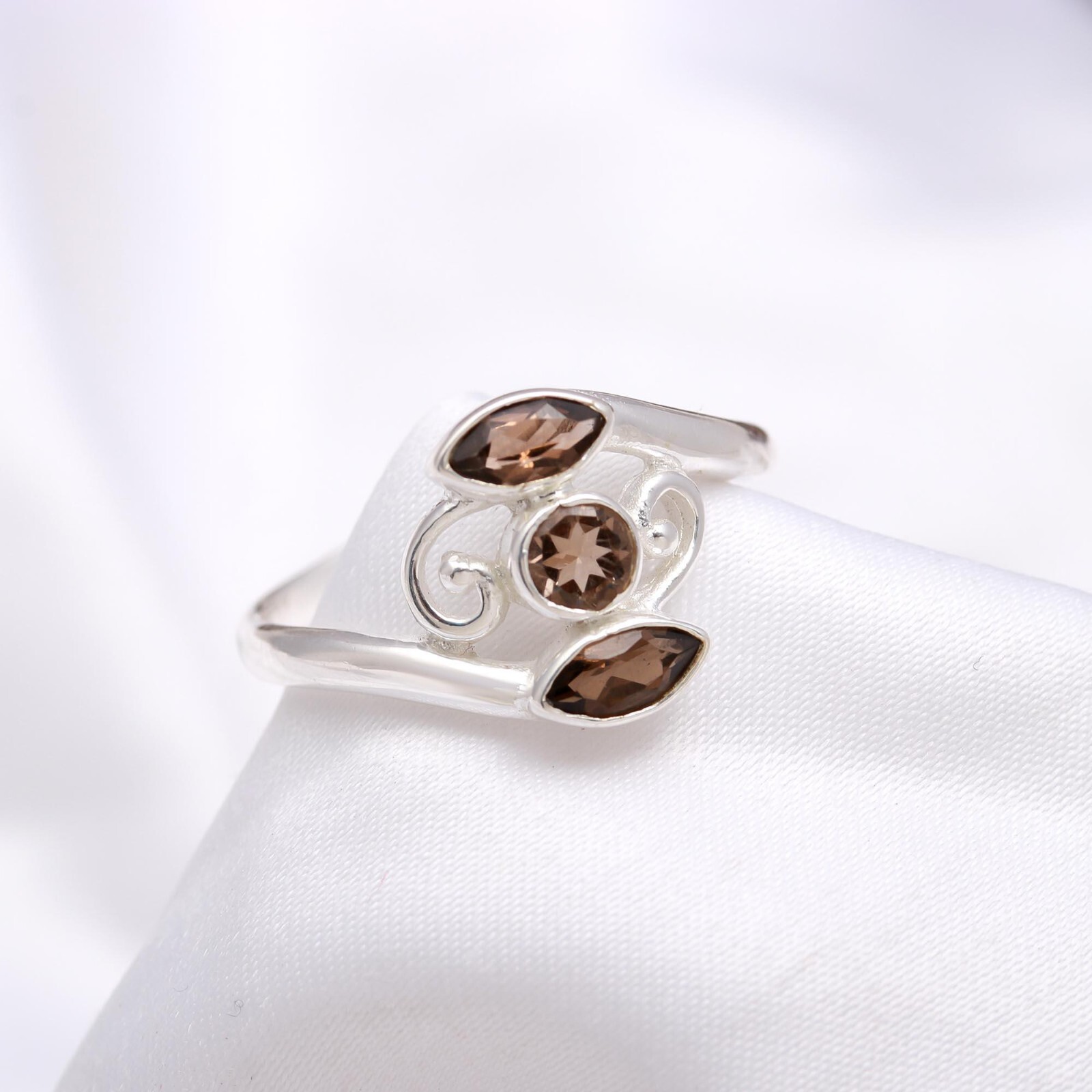 как выглядит Natural Smoky Quartz Round Shape Gemstone Ring 925 Sterling Silver Charm Jewelry фото