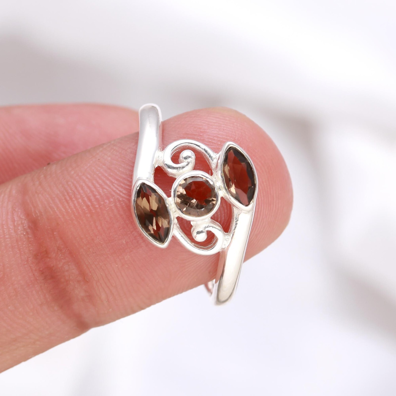 Natural Smoky Quartz Round Shape Gemstone Ring 925 Sterling Silver Charm Jewelry