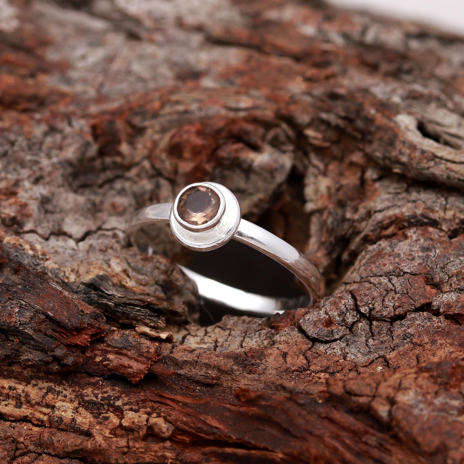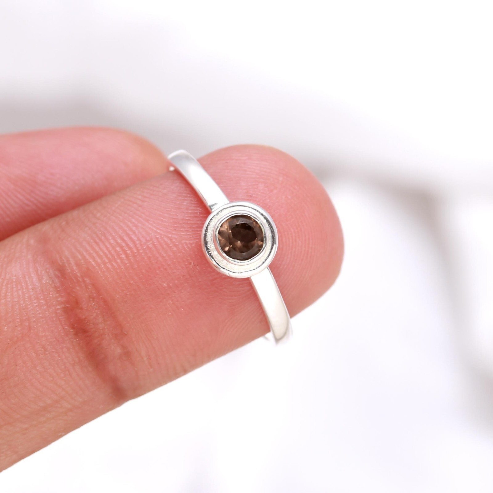 как выглядит 100 Natural Smoky Quartz Round Shape Statement Ring Solid Silver Dainty Jewelry фото
