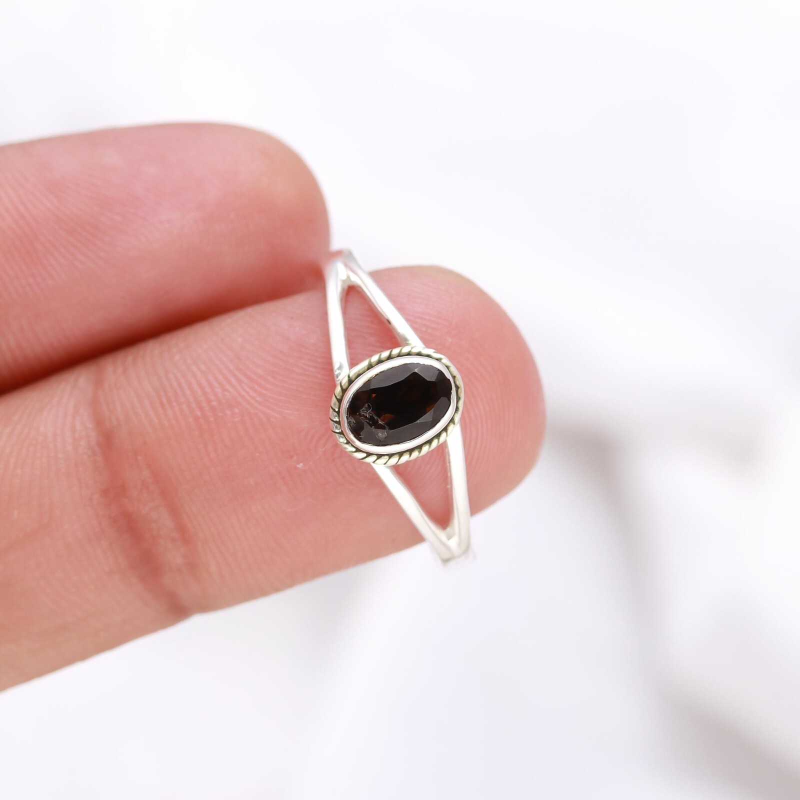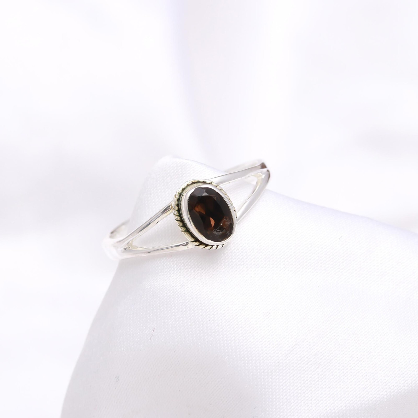AAA Smoky Quartz Oval Shape Minimalist Ring 925 Sterling Silver Handmade Jewelry