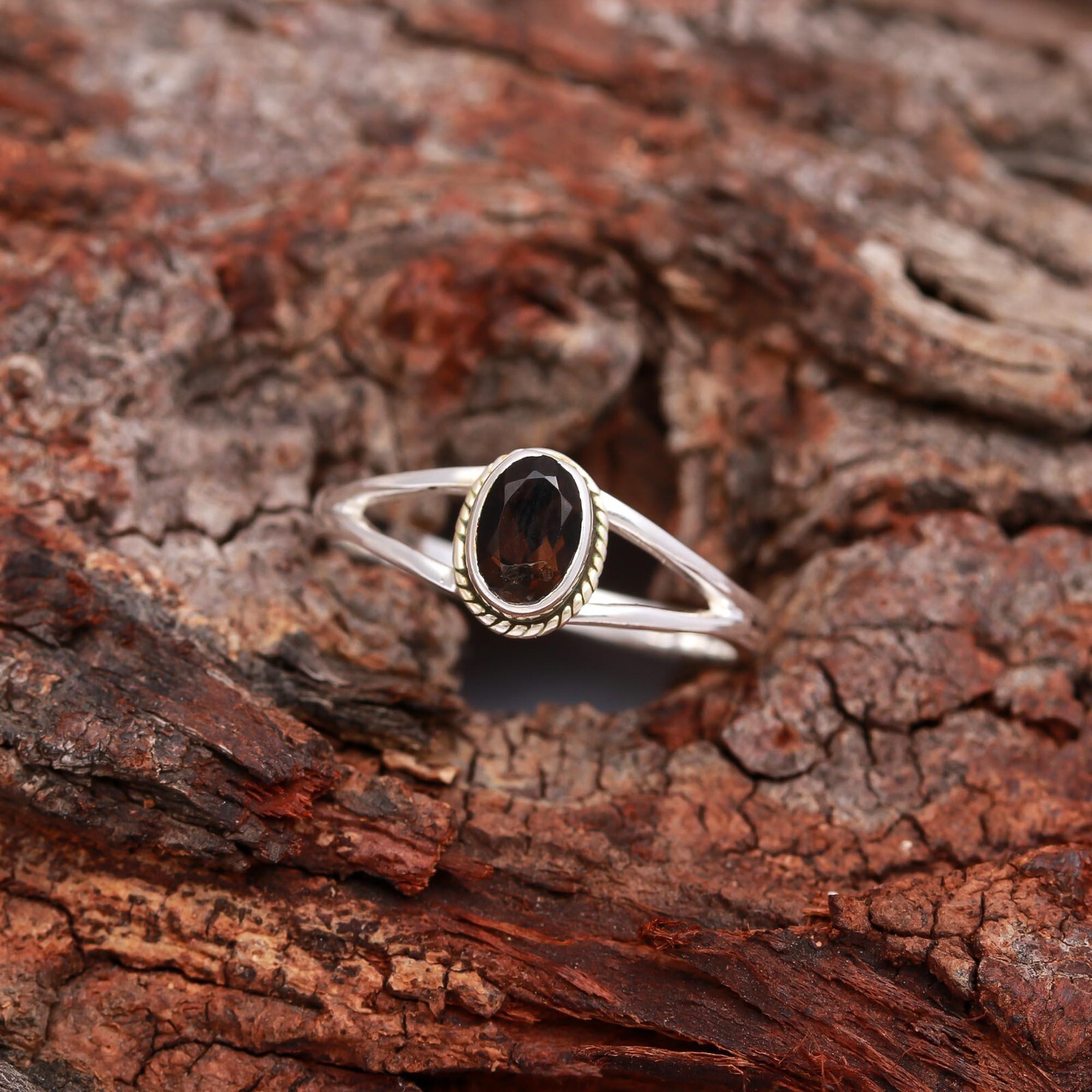 как выглядит AAA Smoky Quartz Oval Shape Minimalist Ring 925 Sterling Silver Handmade Jewelry фото