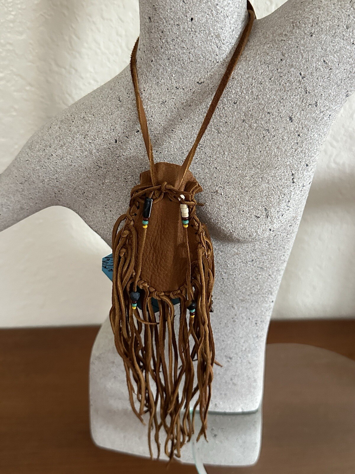 как выглядит Leather Medicine Bag With Stone/Bead Embellishment фото