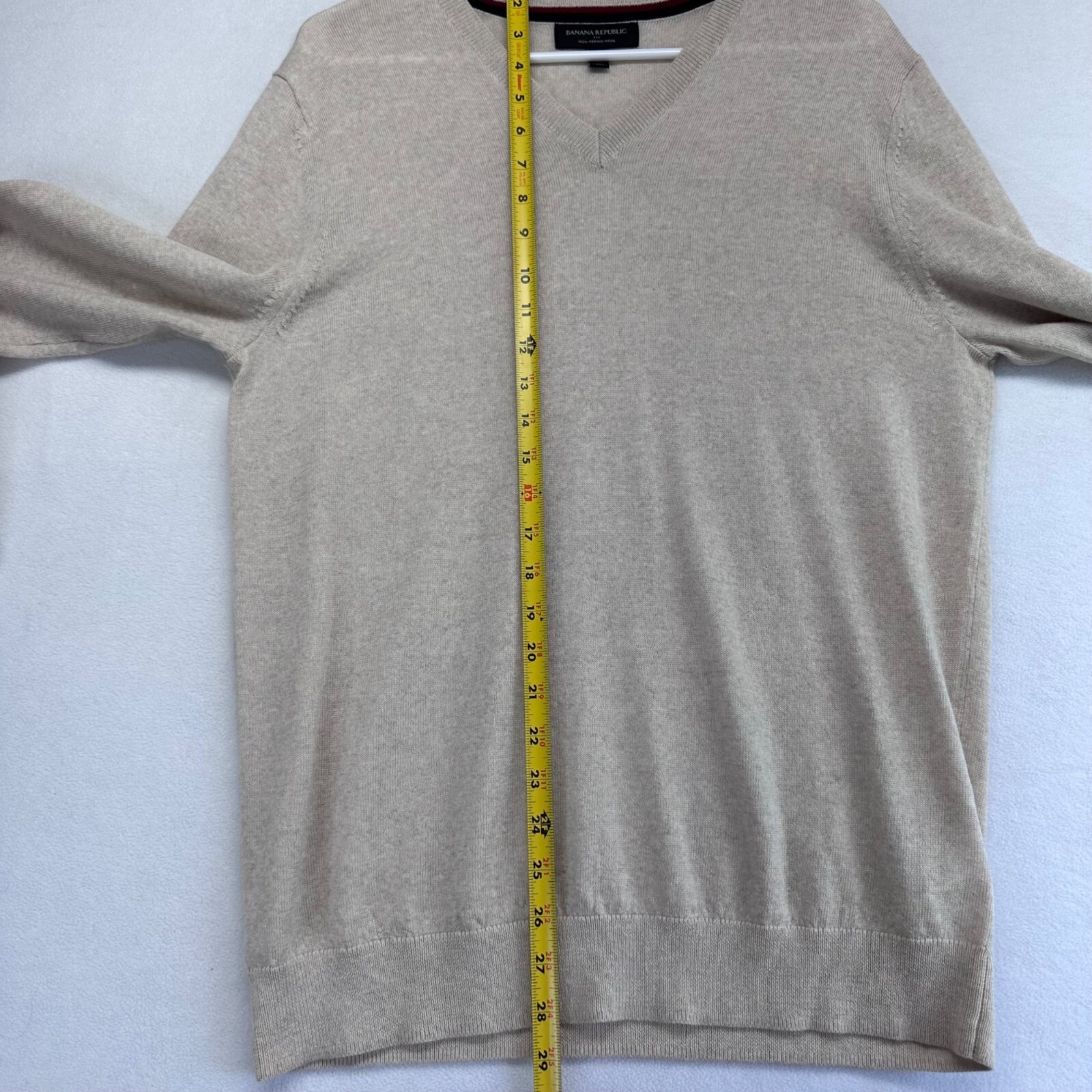 как выглядит Banana Republic Mens 100 Merino Wool V-Neck Pullover Sweater Size M Oatmeal фото