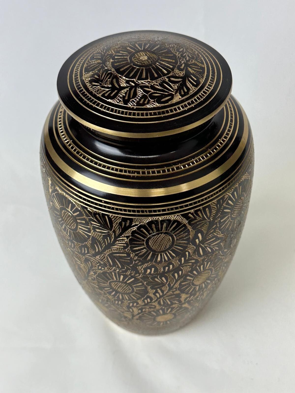 • Elegant Solid Brass Black Golden Flower Urns Handcrafted Memorial Urn for Ashes