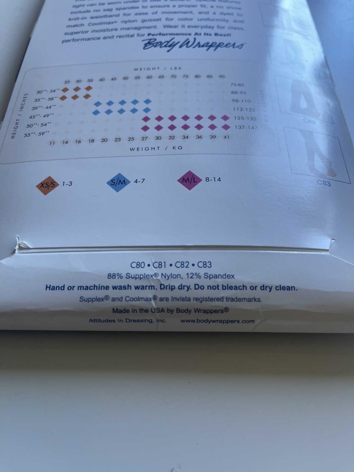 как выглядит Body Wrappers WHITE C80 Children M/L 8-14 FULL FOOT Tights фото