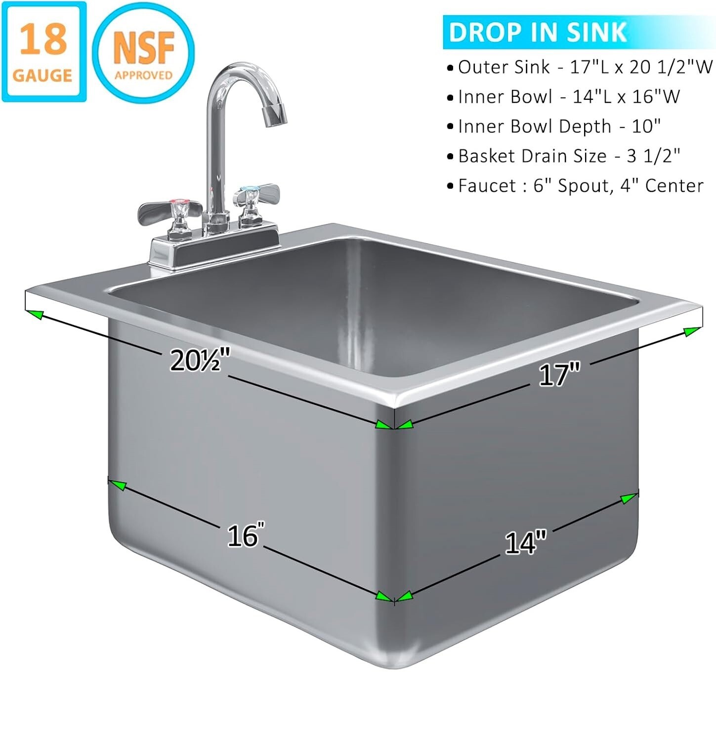 14 x 16 x 10 Stainless Steel 1 Compartment Drop-In Sink with Faucet. NSF