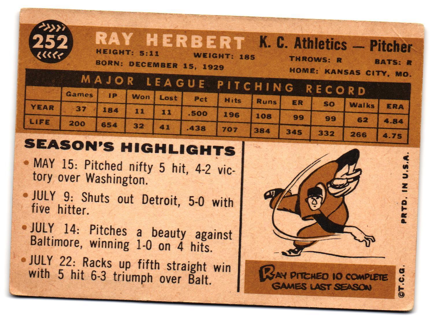 1960 Topps Baseball #198-571: 1960 Topps #252 Ray Herbert