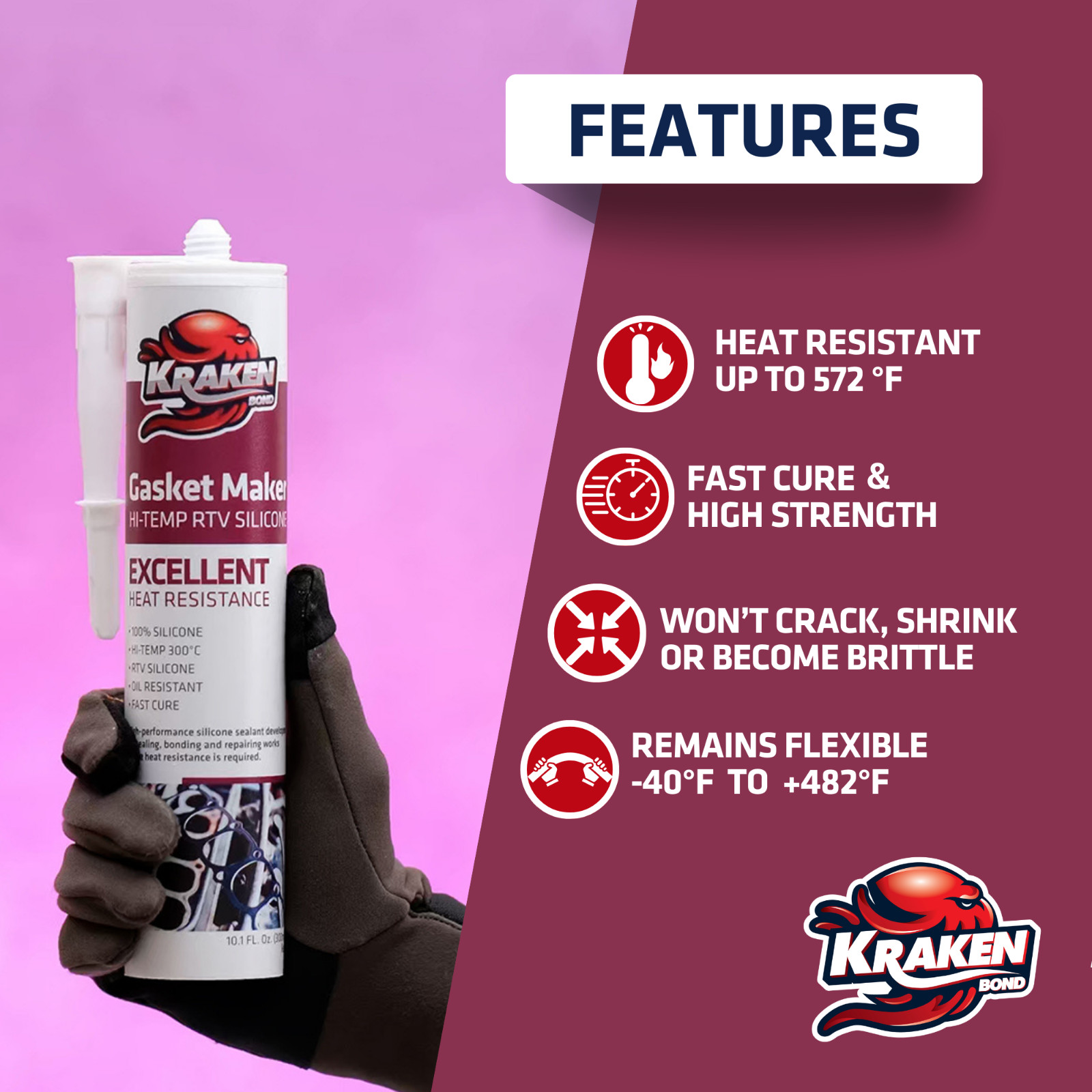 Kraken Bond Gasket Maker RTV Silicone, 10.1oz 12 Pack Red