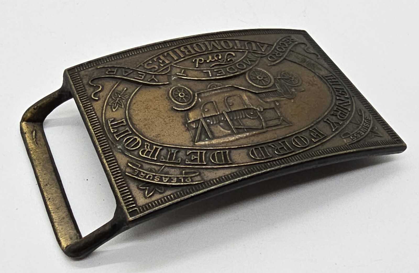 Vintage Henry Ford Detroit Automobiles Record Year Model T Brass Belt Buckle