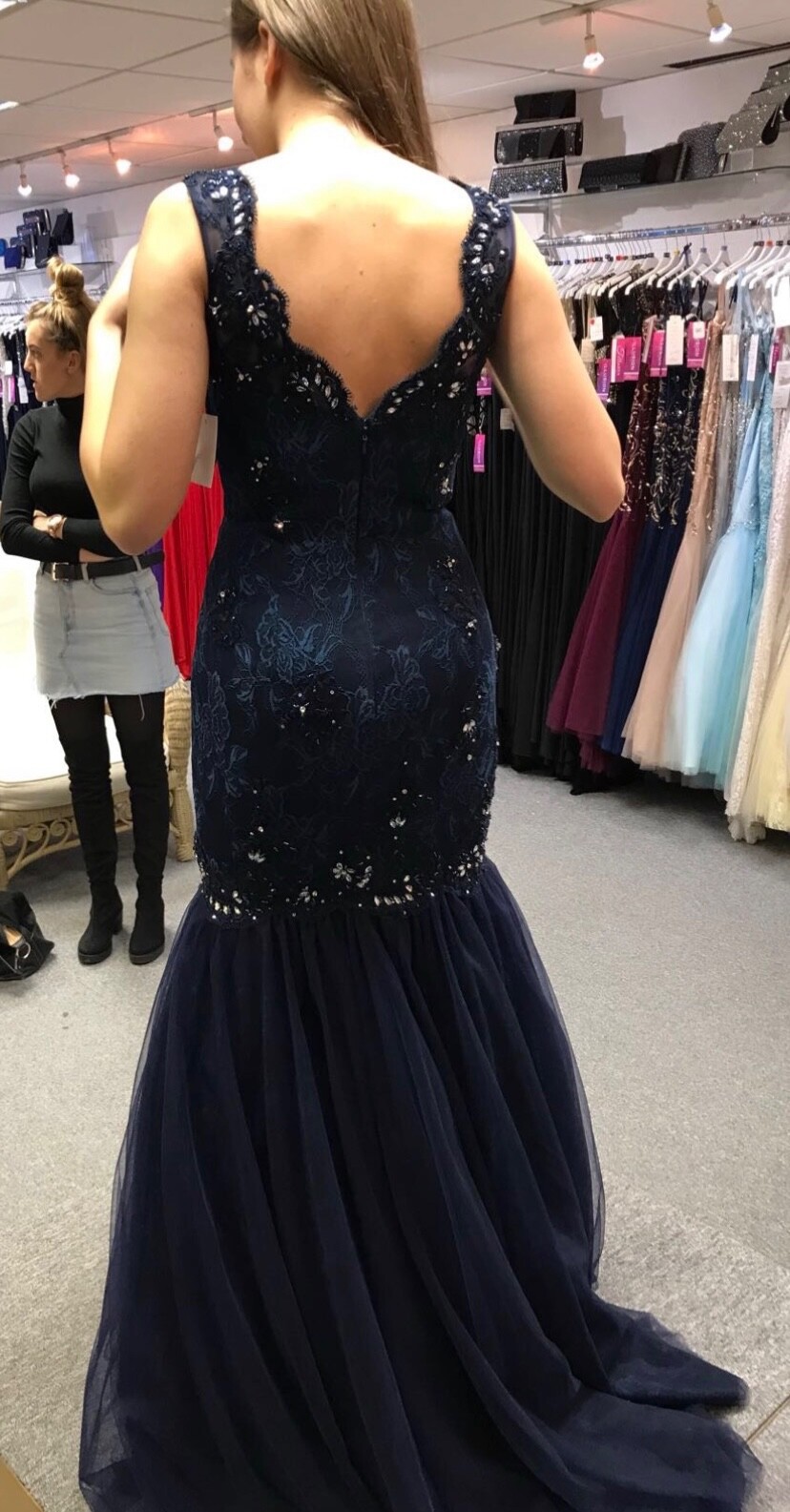 Tiffany's prom dress - Dark blue lace fishtail dress