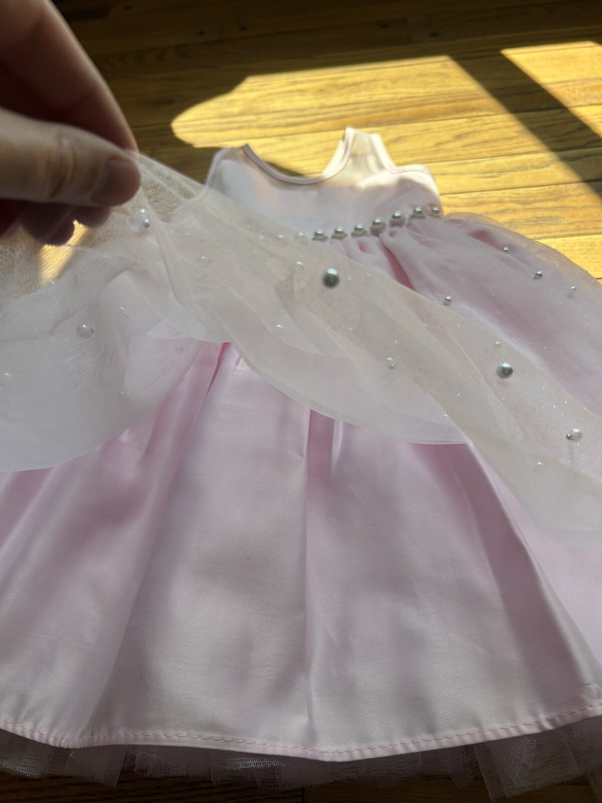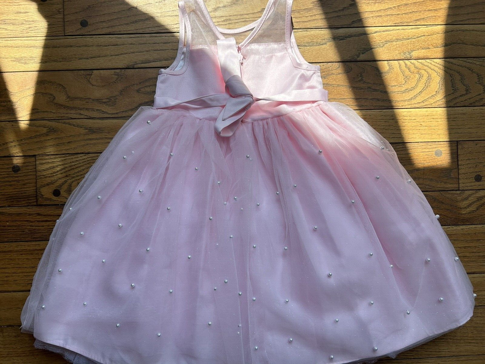 как выглядит American Princess Girls Dress Formal Pink Tulle Pearls Diamond Belt Bow Sleevele фото