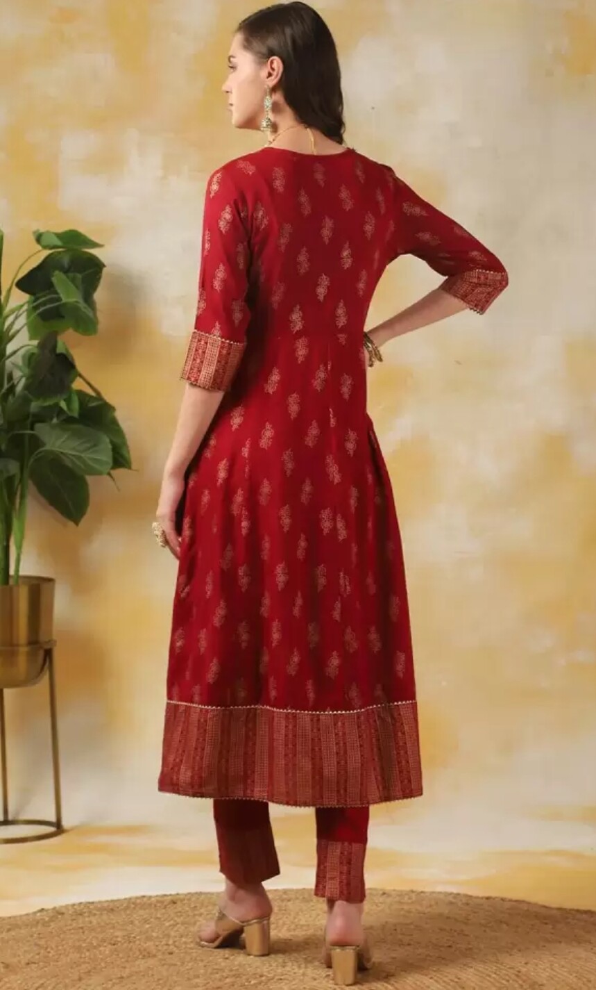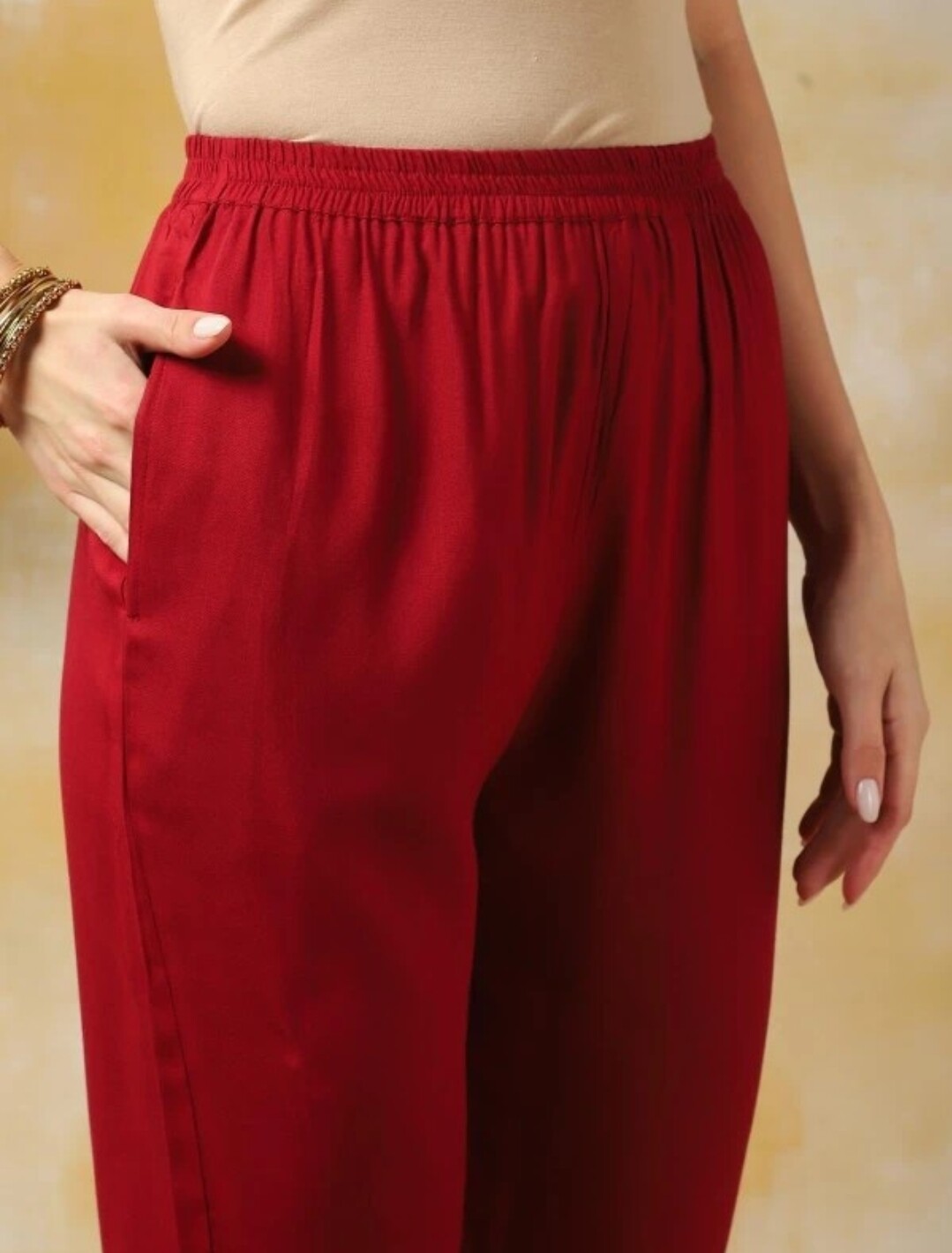 Indian Ethnic Wear;Women Maroon Gotta Patti Viscose Rayon Kurta with Trousers.