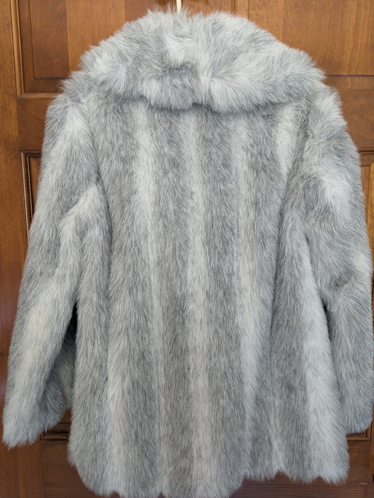 Vintage Wiman Faux Fur Coat Silver Fox Pockets 2 Hook/Eye Closure Sz 10 USA