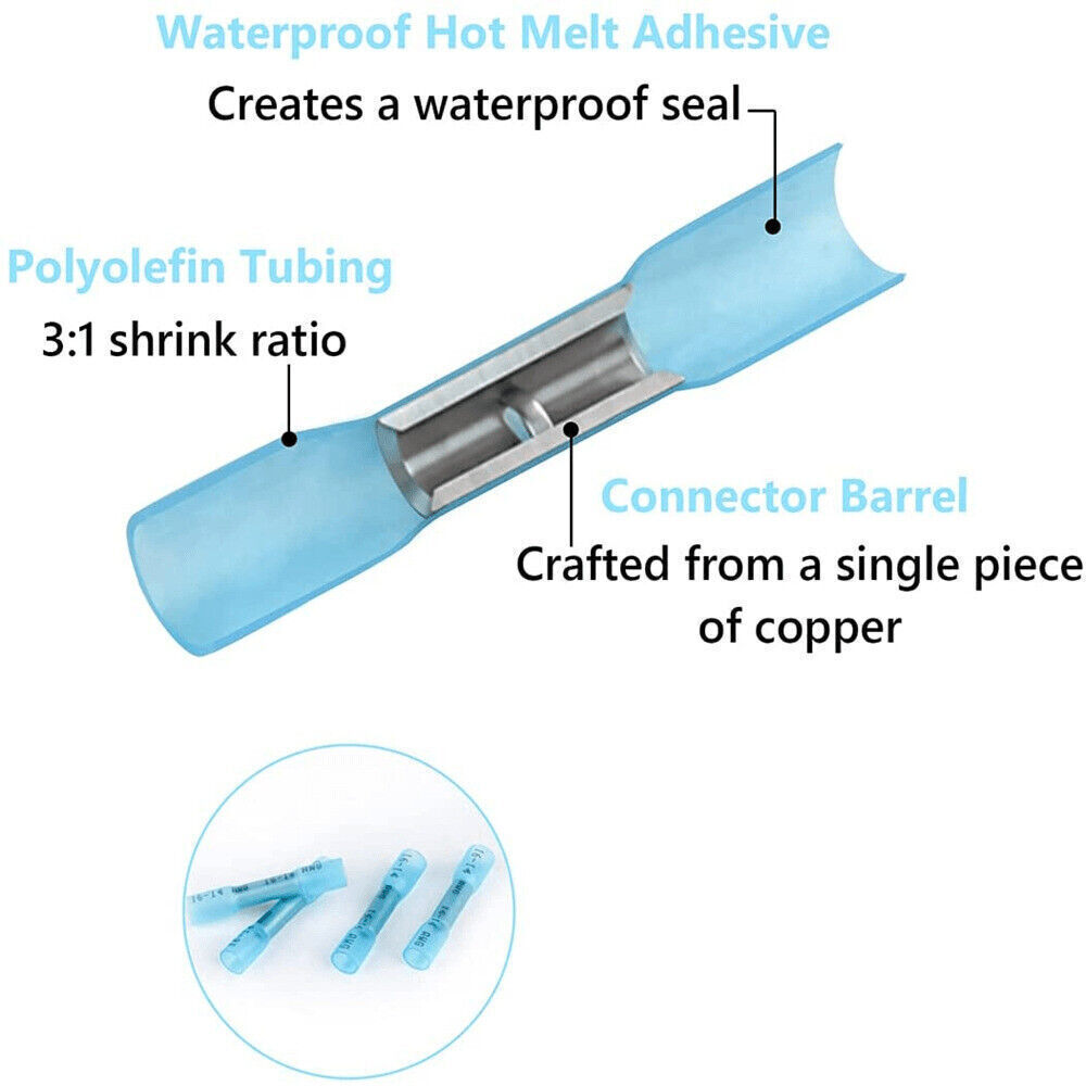 50PCS Waterproof Butt Splice Terminals 16-14AWG Heat Shrink Wire Connectors