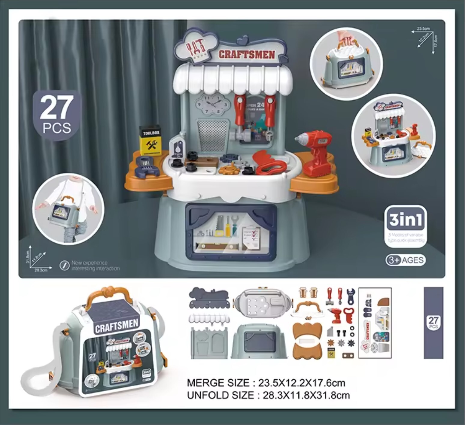 kids pretend play construction tools box toys/portable handbag storage kid toys