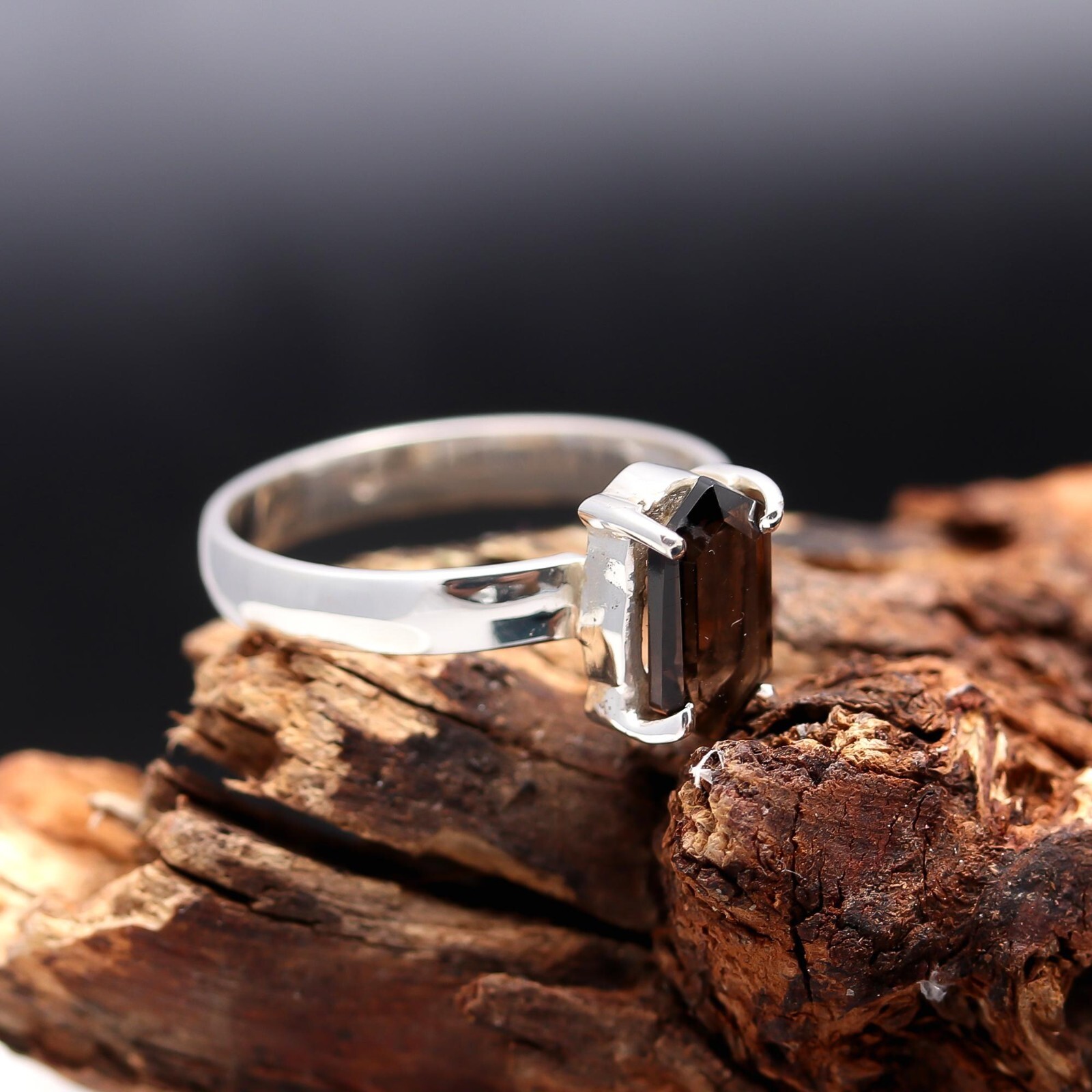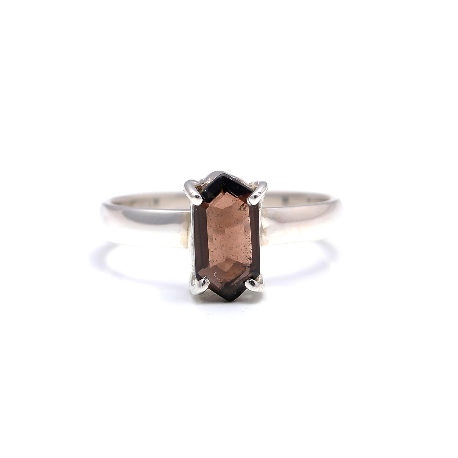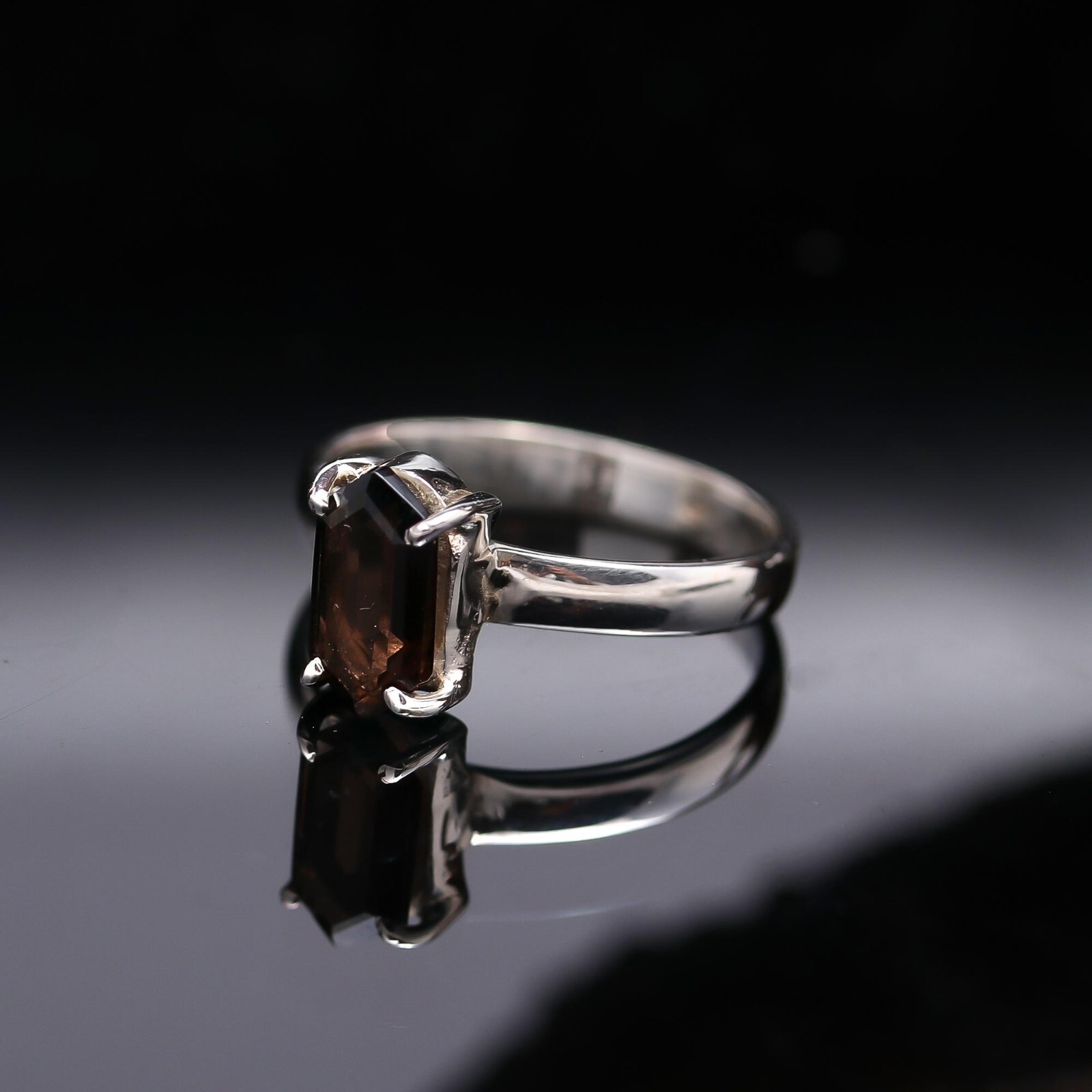 как выглядит 100 Natural Smoky Quartz Hexagon Shape Ring Solid Silver Jewelry Christmas Gift фото