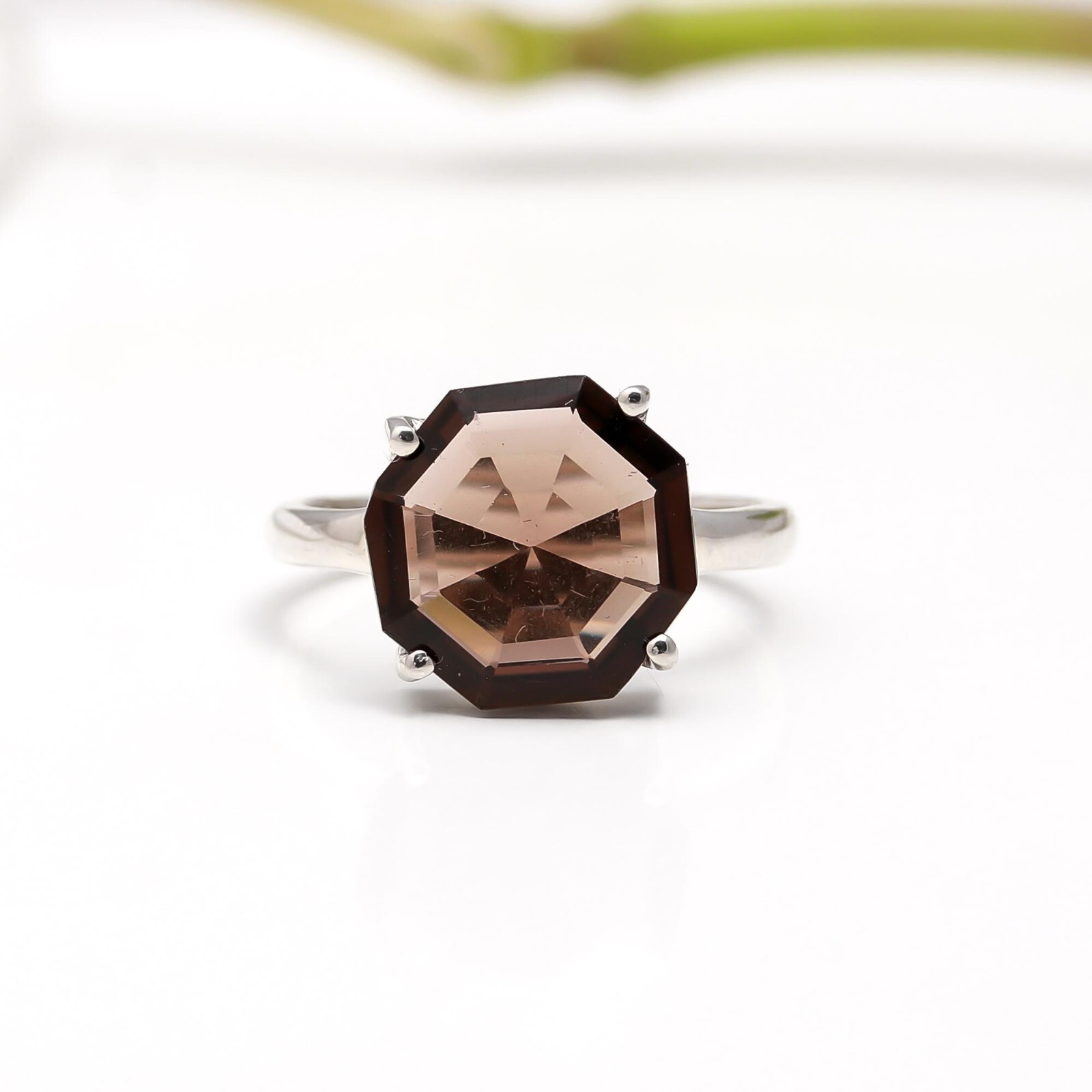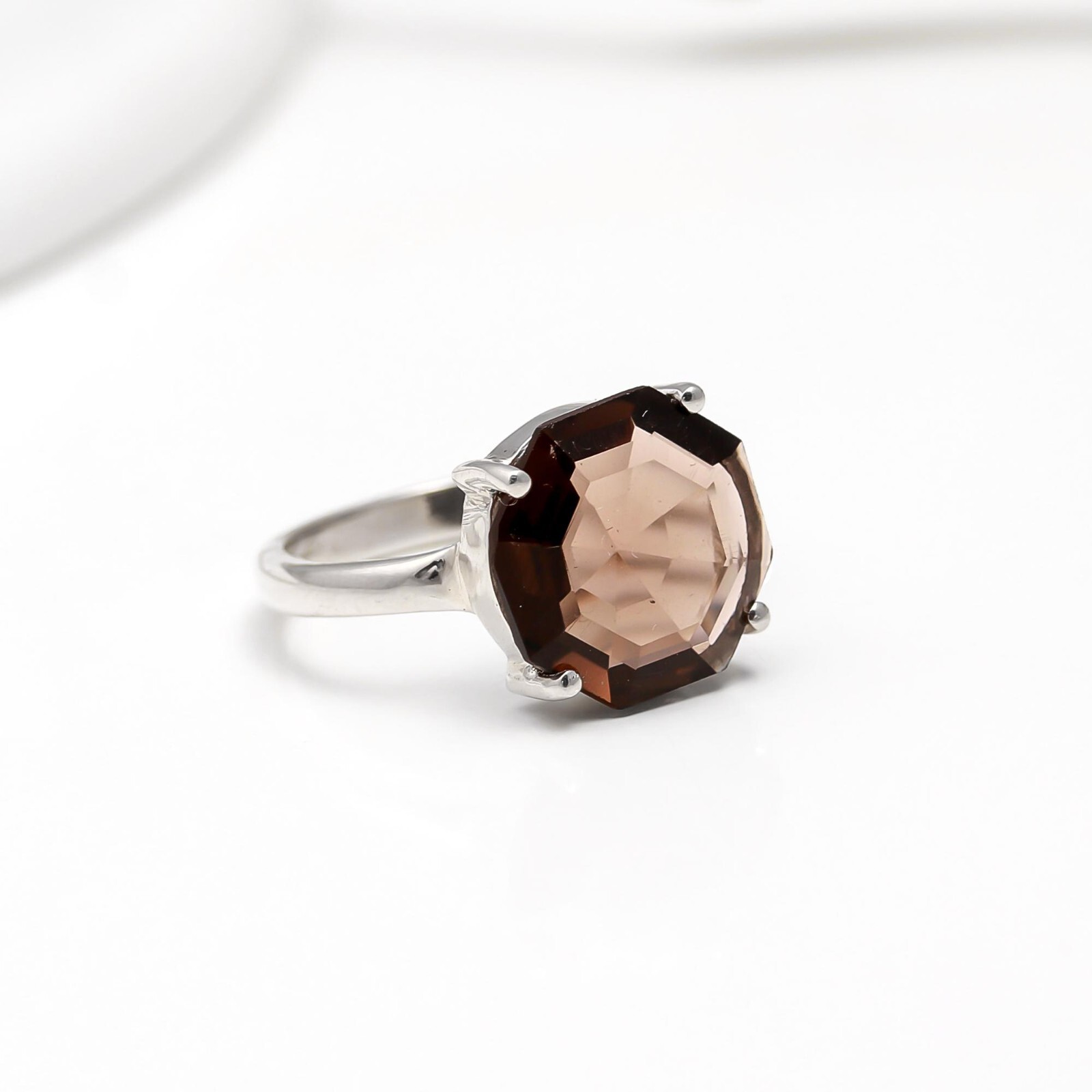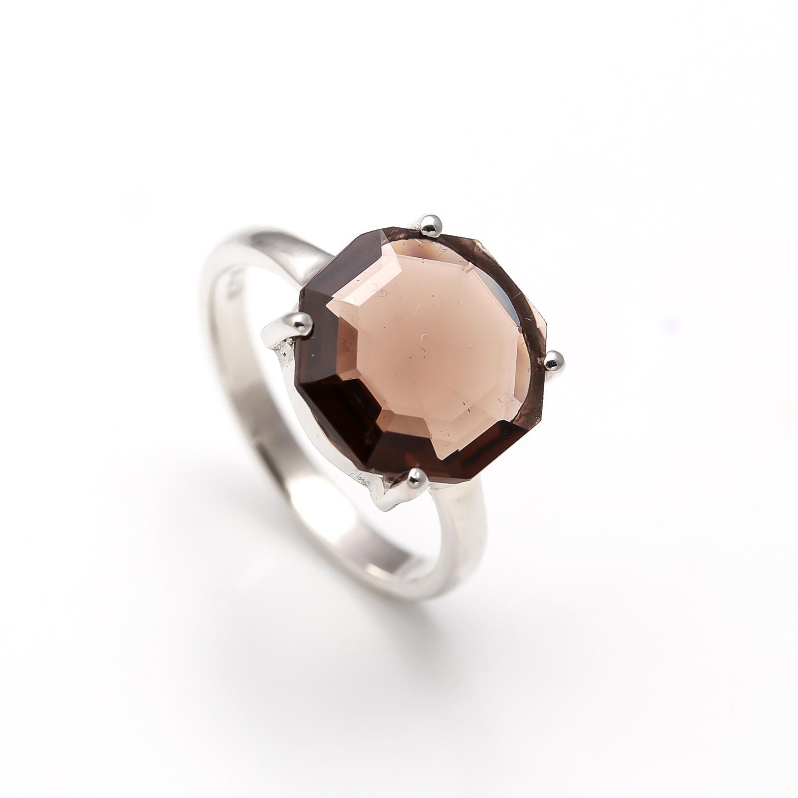 как выглядит Natural Smoky Quartz Octagon Shape Engagement Ring 925 Sterling Silver Jewelry фото
