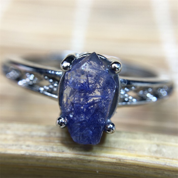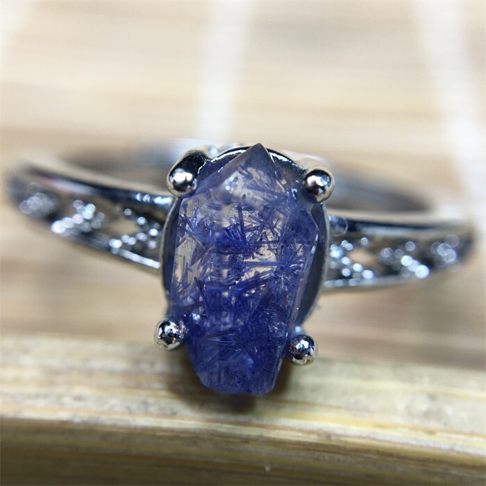 как выглядит 9.9Ct 100 Natural Blue Rare Dumortierite Quartz Rutilated Adjustable Ring фото