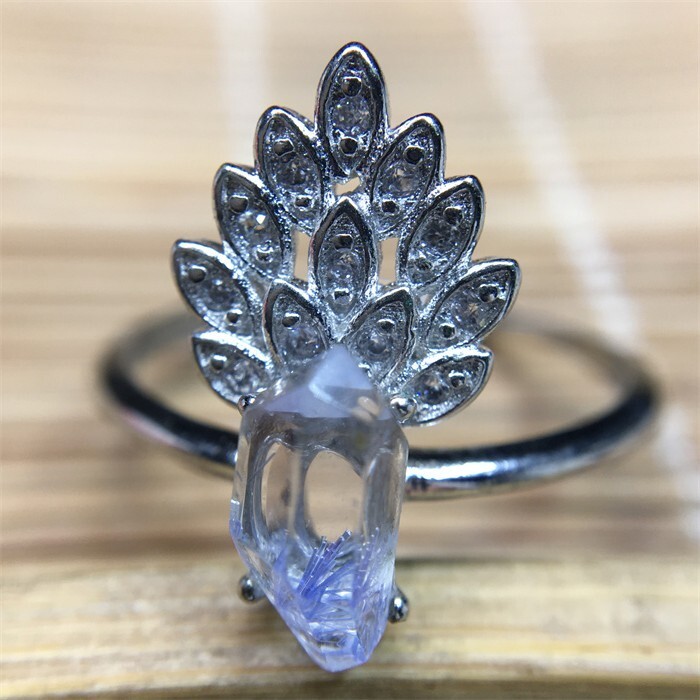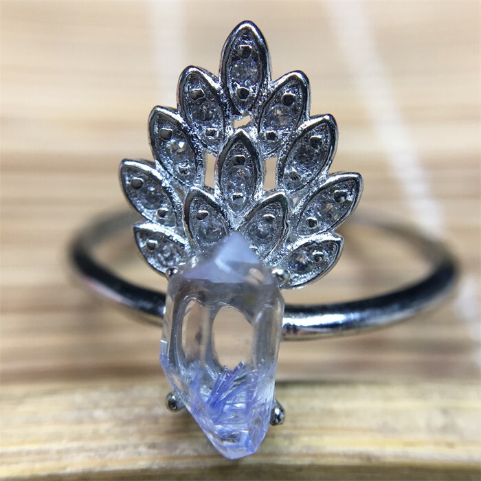 как выглядит 8.4Ct 100 Natural Blue Rare Dumortierite Quartz Rutilated Adjustable Ring фото